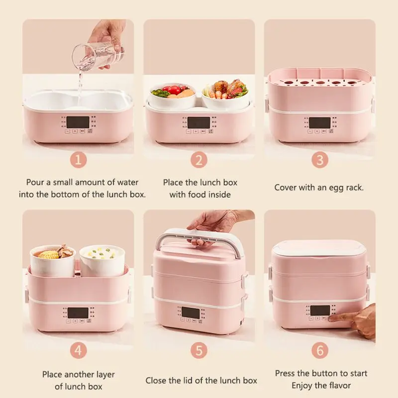 Портативный Ланч-бокс на 1 л/2 л с керамическим вкладышем и герметичной крышкой, цифровой дисплей, интеллектуальная рисоварка, пароварка для еды, резервная плита