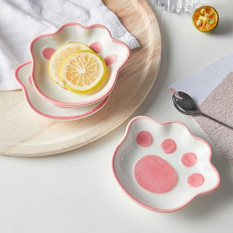 Японская тарелка со вкусом кошачьей лапы, керамическая тарелка с мультяшным рисунком, десертная тарелка, соевый фруктовый соус, стандартная чаша, бытовые блюда для погружения