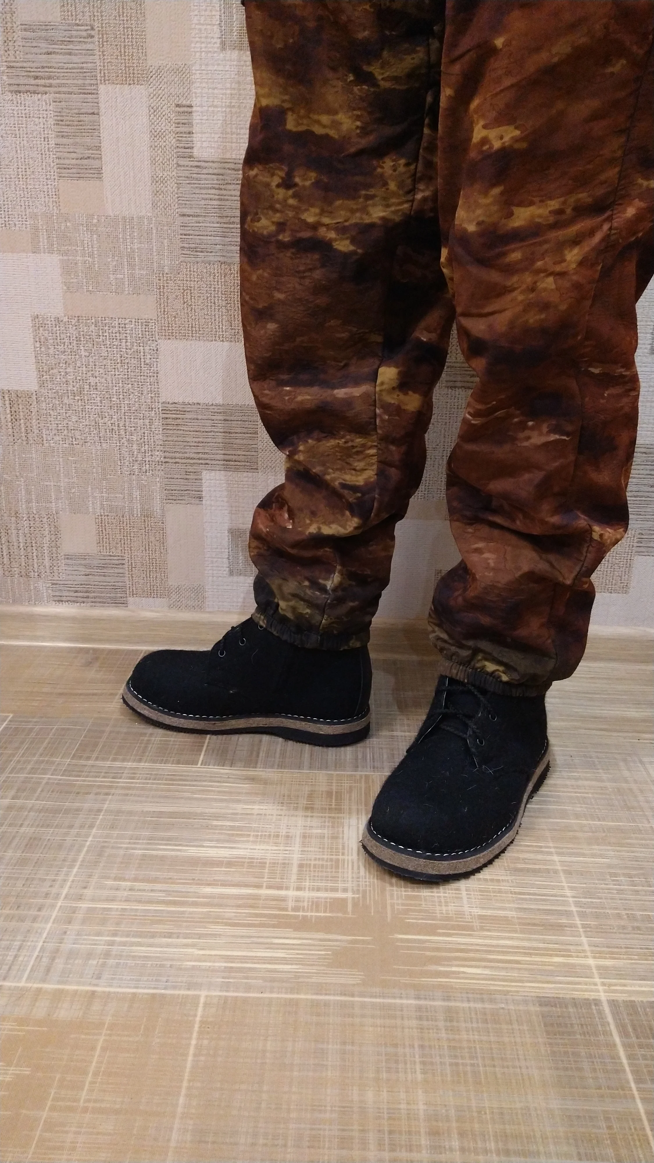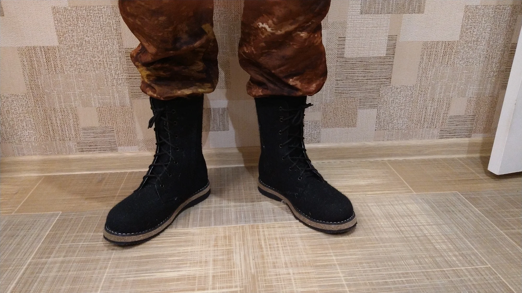 Приехали из Омска в Липецк, за 5 дней. Вещь!!! Давно присматривал такие, а тут после зимы хорошо подешевели, ну я их и взял. Войлок в разных местах - разной толщины. Самый тонкий ок. 4 мм - сзади, по бокам ок.6 мм., но всё ощущаются надёжно. Особенно, подошва, с толстой войлочной прокладкой, как на советских унтах. По поводу размера. Ношу 42, но из за травмированной ноги беру 43, так вот на обычный тонкий носок, заказанный мной 43, в самый раз. Если кто будет брать на размер больше, не страшно, можно если что, компенсировать носками.