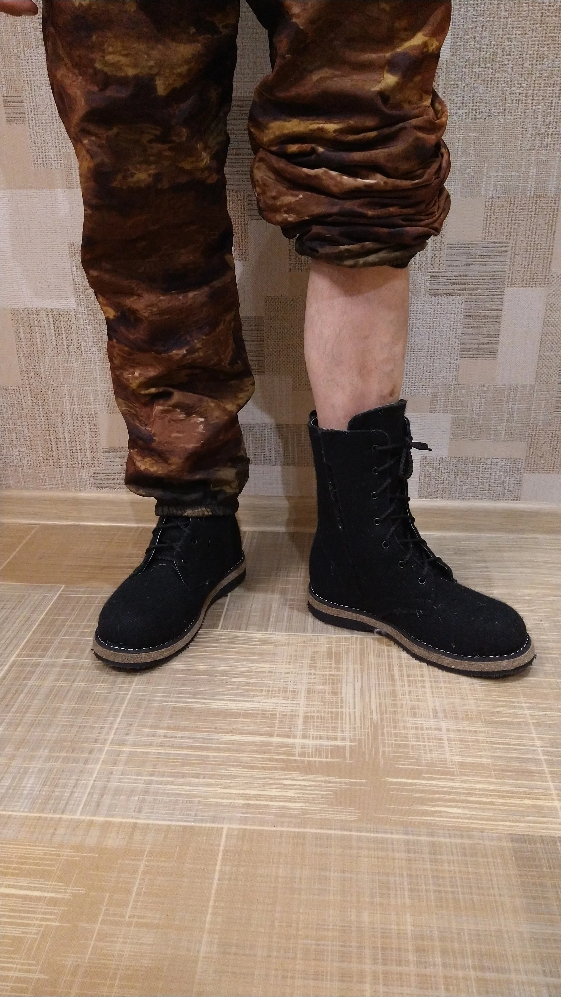 Валенки классные!!! На тонкий носок - размер в размер,.. думаю мех немного примнётся и тёплый носок войдёт легко. Пошиты качественно, замок не заедает если мех около него поправить или подстричь. Смотрятся не громоздкими, специально сфотал на фоне зимних ботинок. До Хабаровска шло 13 дней. Уверен что в морозы в них будет очень тепло. Я покупкой доволен, продавцу и производителям - респект и уважуха!!!
