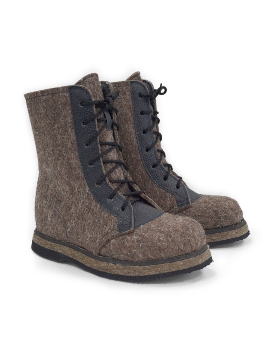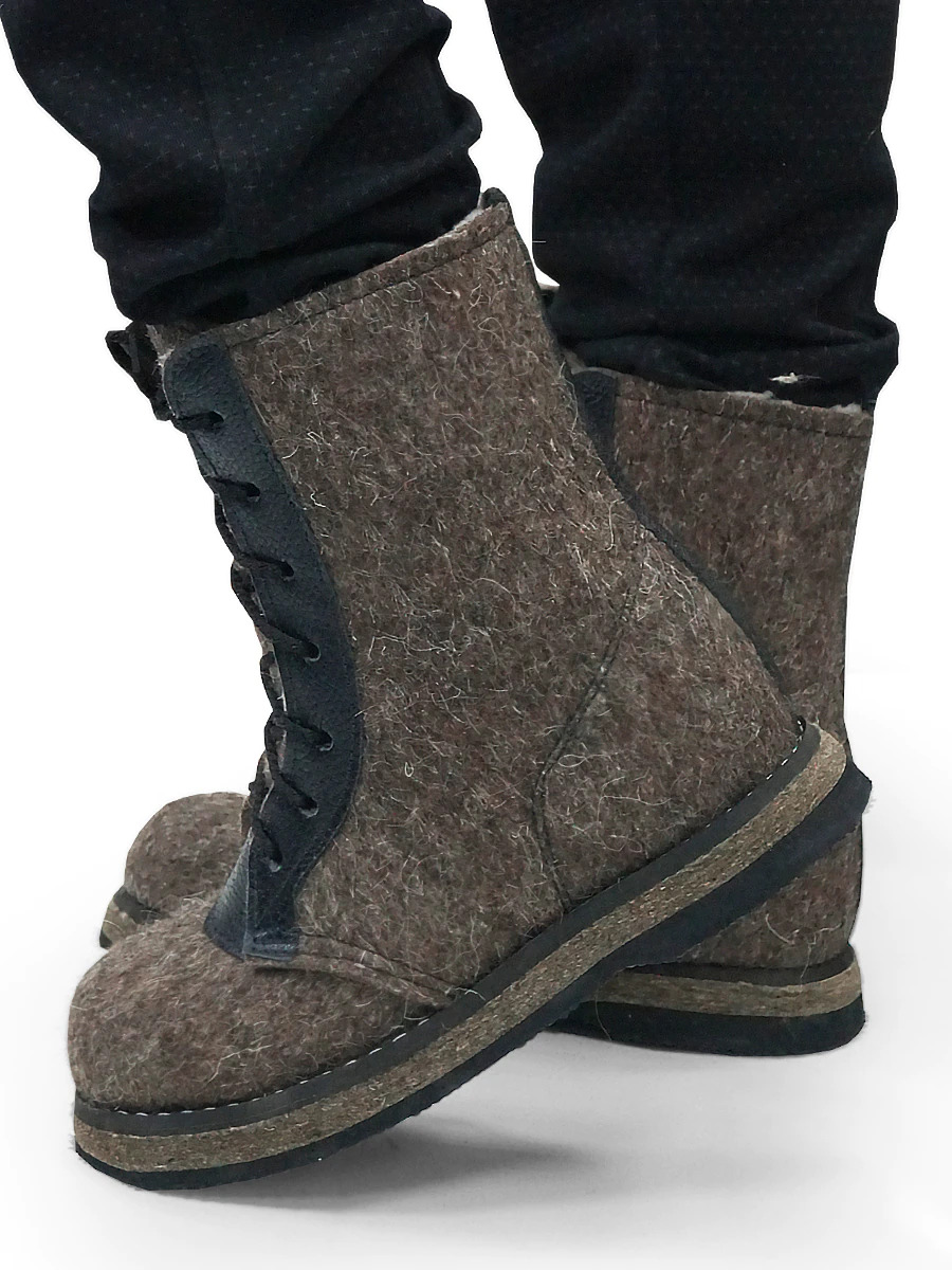Берцы из натурального обувного войлока серого цвета на шнуровке без замка.