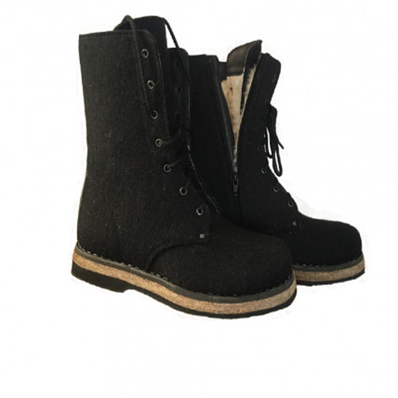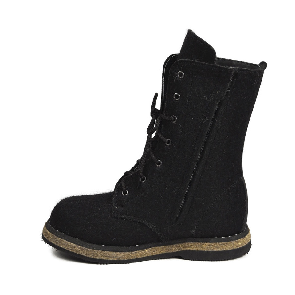 Берцы из натурального обувного войлока черного цвета на шнуровке с замком.