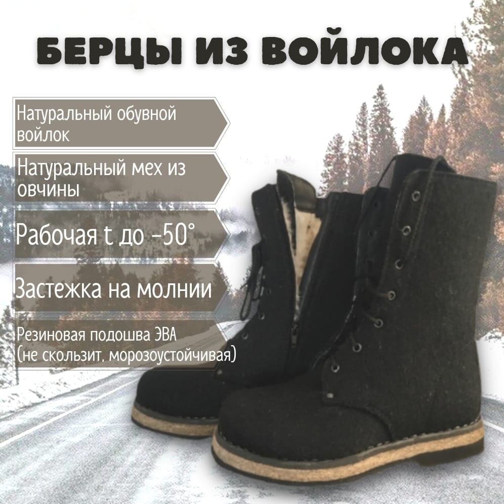 Ботинки зимние. Обувь зимняя, мужская. Берцы зимние натуральные войлочные. Обувь для рыбалки.