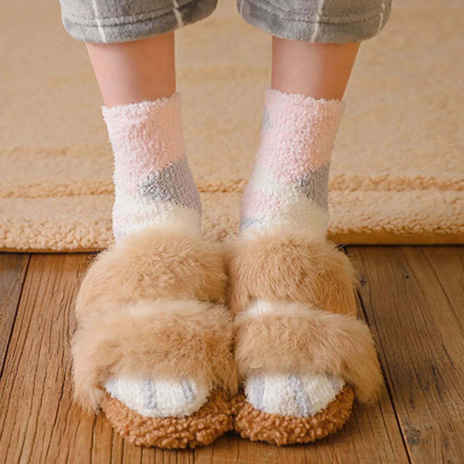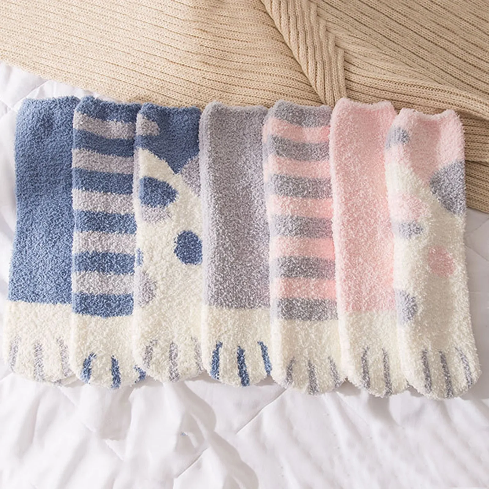Женские модные носки в полоску с кошачьими лапами, милые забавные толстые женские носки с животными из мультфильмов, блестящие носки с пальцами зебры/тигра/кота