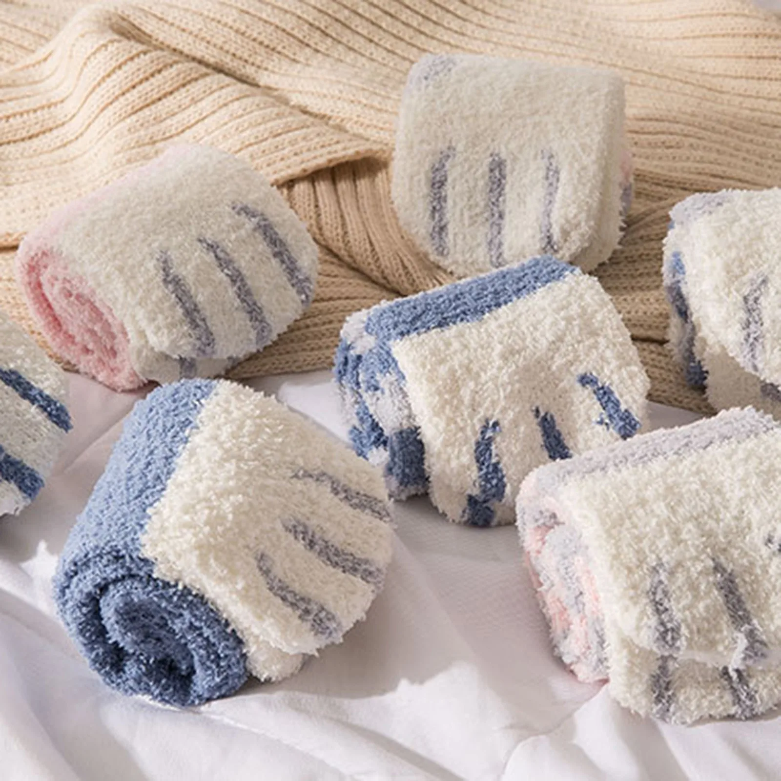 - Женские модные носки в полоску с кошачьими лапами, милые забавные толс...