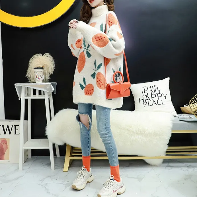 Женский вязаный пуловер с принтом