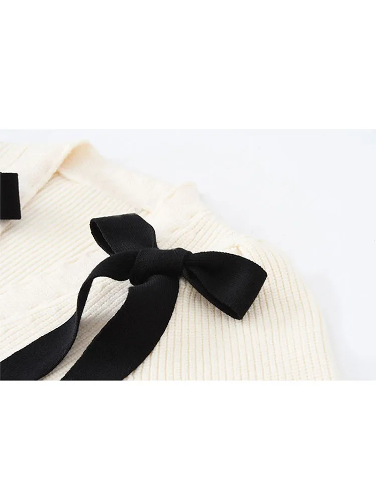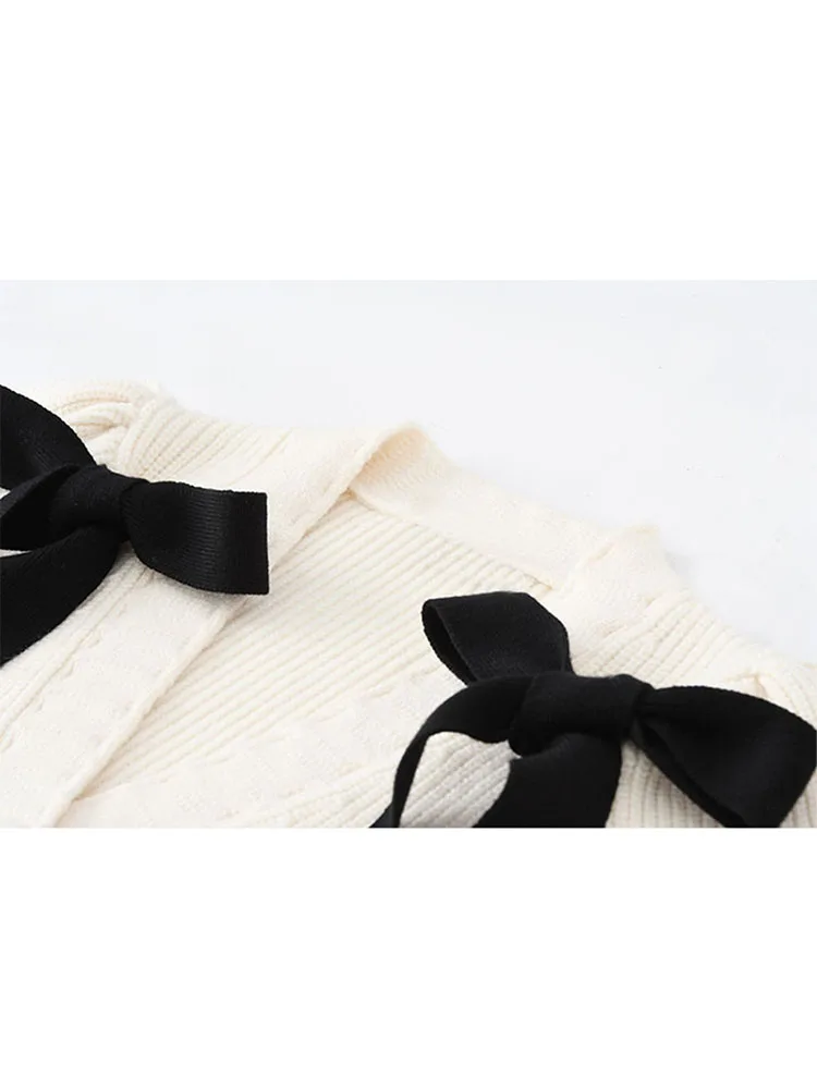 Вязаный кардиган с бантом для женщин, новинка 2022, тонкий французский милый однобортный свитер с V-образным вырезом и длинным рукавом для ранней осени, Женский Топ