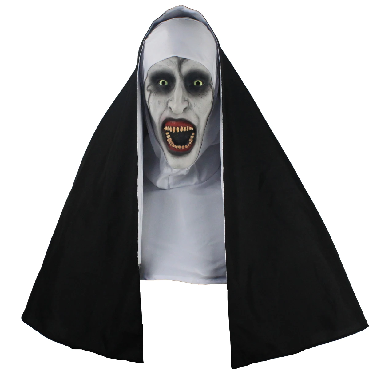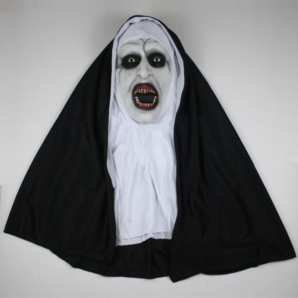 Маска ужасов Нун Косплей страшные латексные маски с шарфом для головы полный шлем лицо Хэллоуин вечерние реквизит