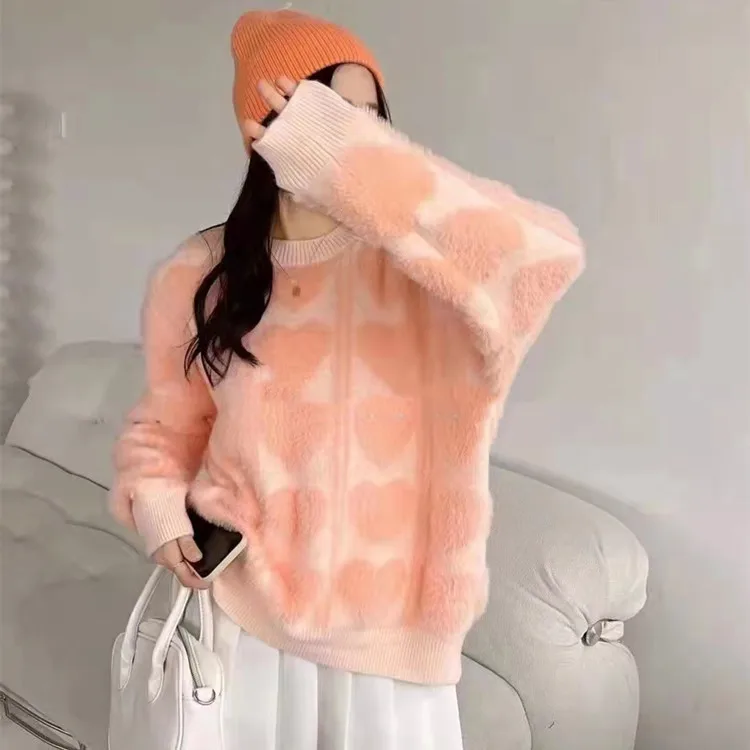 Женский зимний утолщенный свитер из меха норки, новинка 2022, Свободный пуловер в Корейском стиле, свитера, куртки, милые розовые Топы