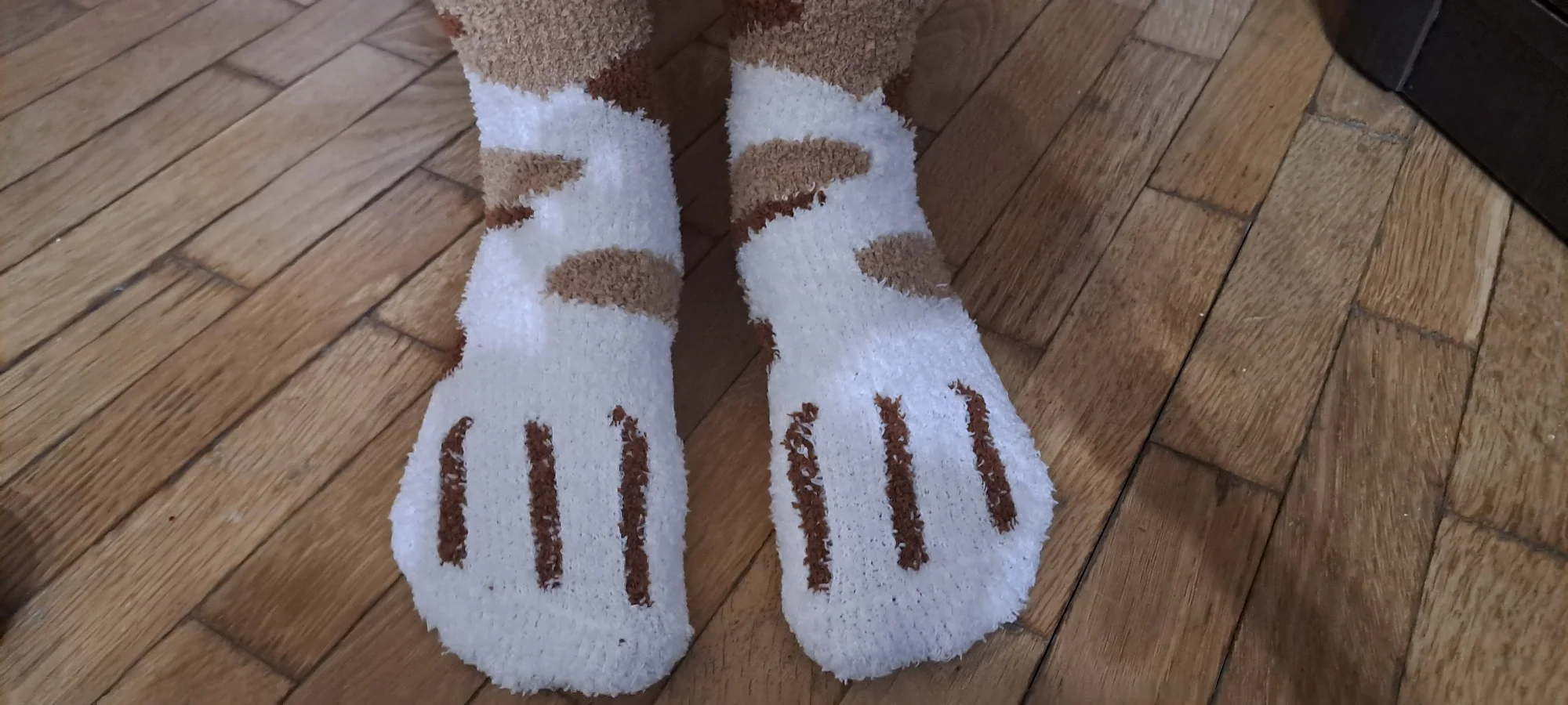 На снимках видно, как линии от гвоздей длинные, а лапа (на задней стороне) маленькая и напечатана слишком низко. Продукт, который я получил, не совсем тот же. Линии, которые отмечают ногти слишком короткие и там's слишком много пространства между ними и лапой сзади, так что это's невозможно выровнять его идеально, чтобы соответствовать предполагаемый дизайн. Дизайн есть, но место перепуталось. Я 'м довольно разочарован, так как я с нетерпением ждал этого носки. Ранее я покупал их у другого продавца, и они были идеальны. Я решил купить их у этого продавца, так как у них была новая модель, отличная от тех, что я купил ранее, и продукт не очень хороший. I'm извините, но я не буду покупать снова, и я могу't рекомендовать эти продукты. На фотографиях ниже вы можете увидеть сравнение между продуктом другого продавца, который я купил ранее (который я носил около года или двух), и новым.Miuna A. 2 января 2023