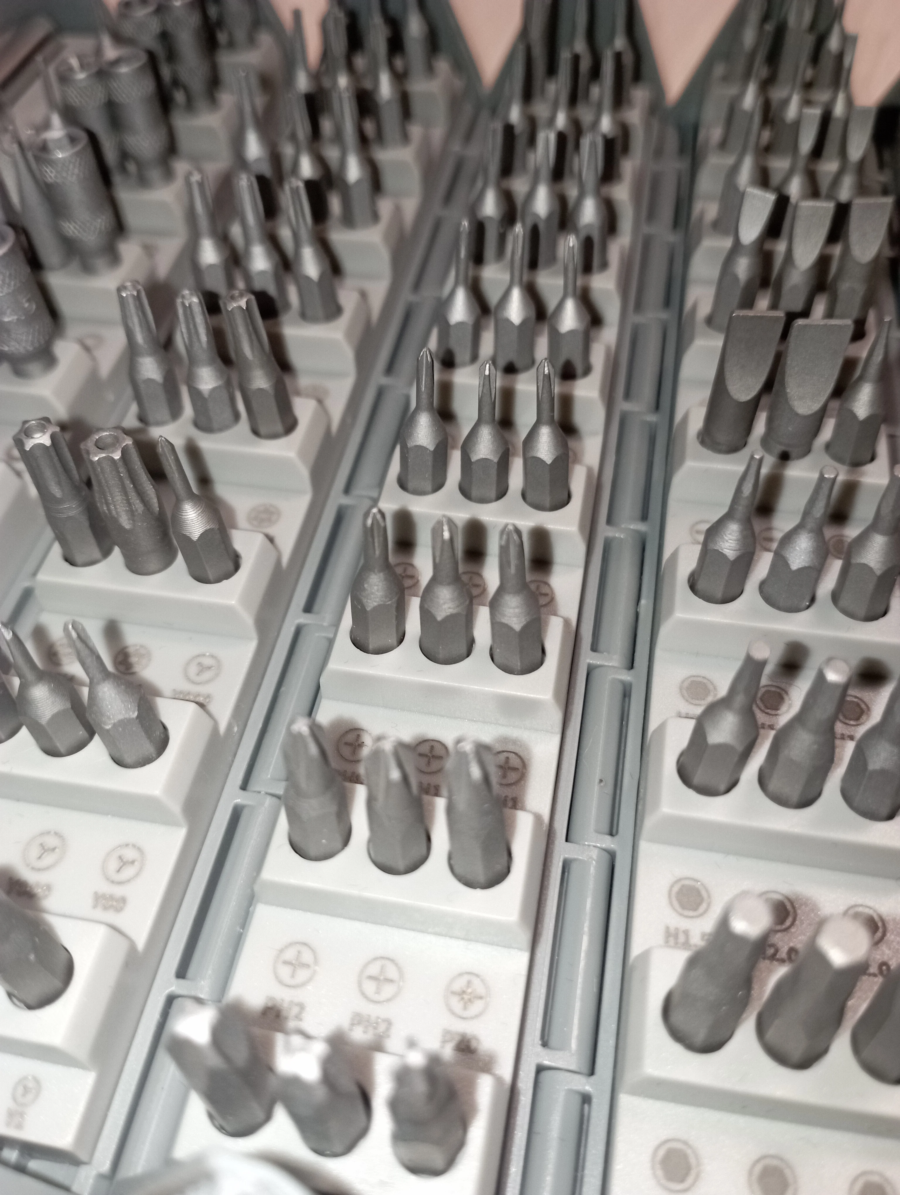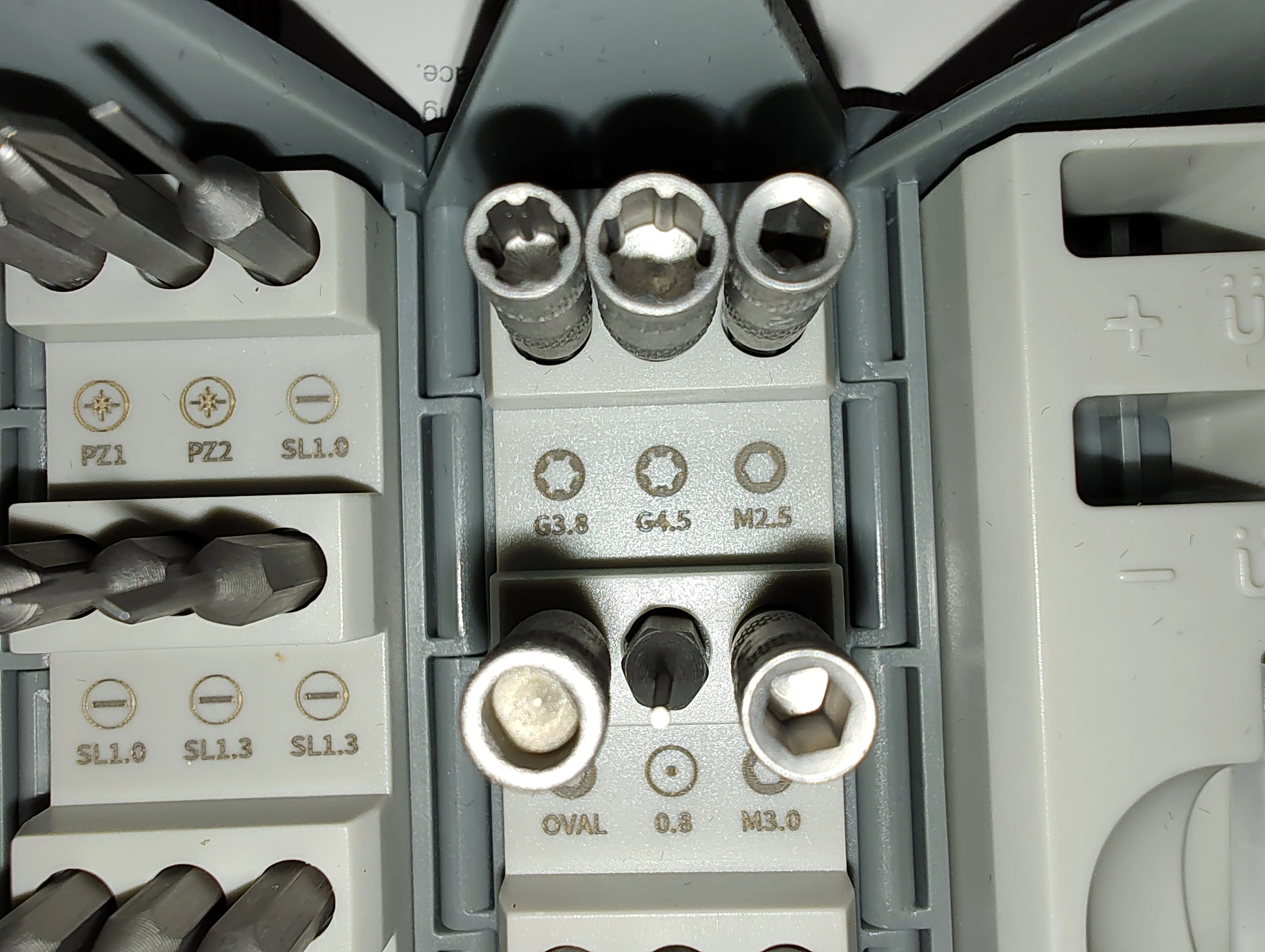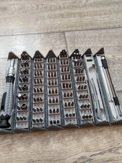 Набор большой, биты на все случаи жизни. С держателем проблема - биты не фиксируются. Одна из бит магнитная, достать что-то. Так она в этом узком месте и останется, несколько не держится в держателе. Из-за смещения бит в секторах некоторые подписи очень мелкие, их надо делать более контрастными. В общем - ну такое себе. Идея хорошая, но исполнение хромает в деталях. Сделано без учёта опыта реального использования.Sergey O. 12 июля 2022