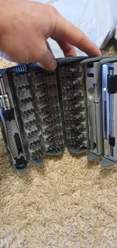 Набор красивый, пока не пользовался. Из минусов, так это сломанные зажимы мешка, в котором хранится набор. Как мне показалось, не очень крепко держаться биты в самой отвертке(когда резко дернешь вниз, они выпадают, но это не критично, так как ты не дёргаешь отверткой при использовании)RU s. 31 августа 2022