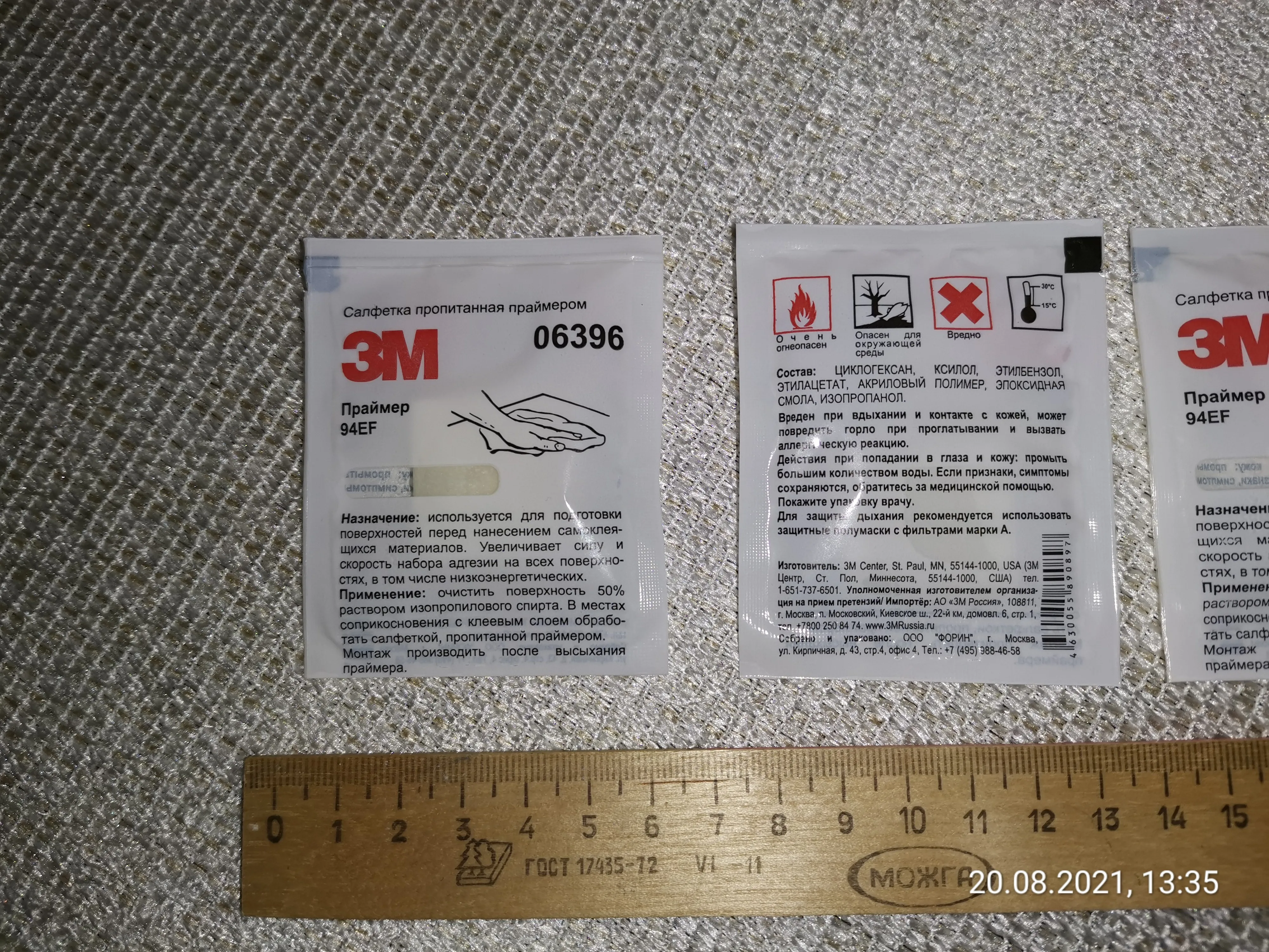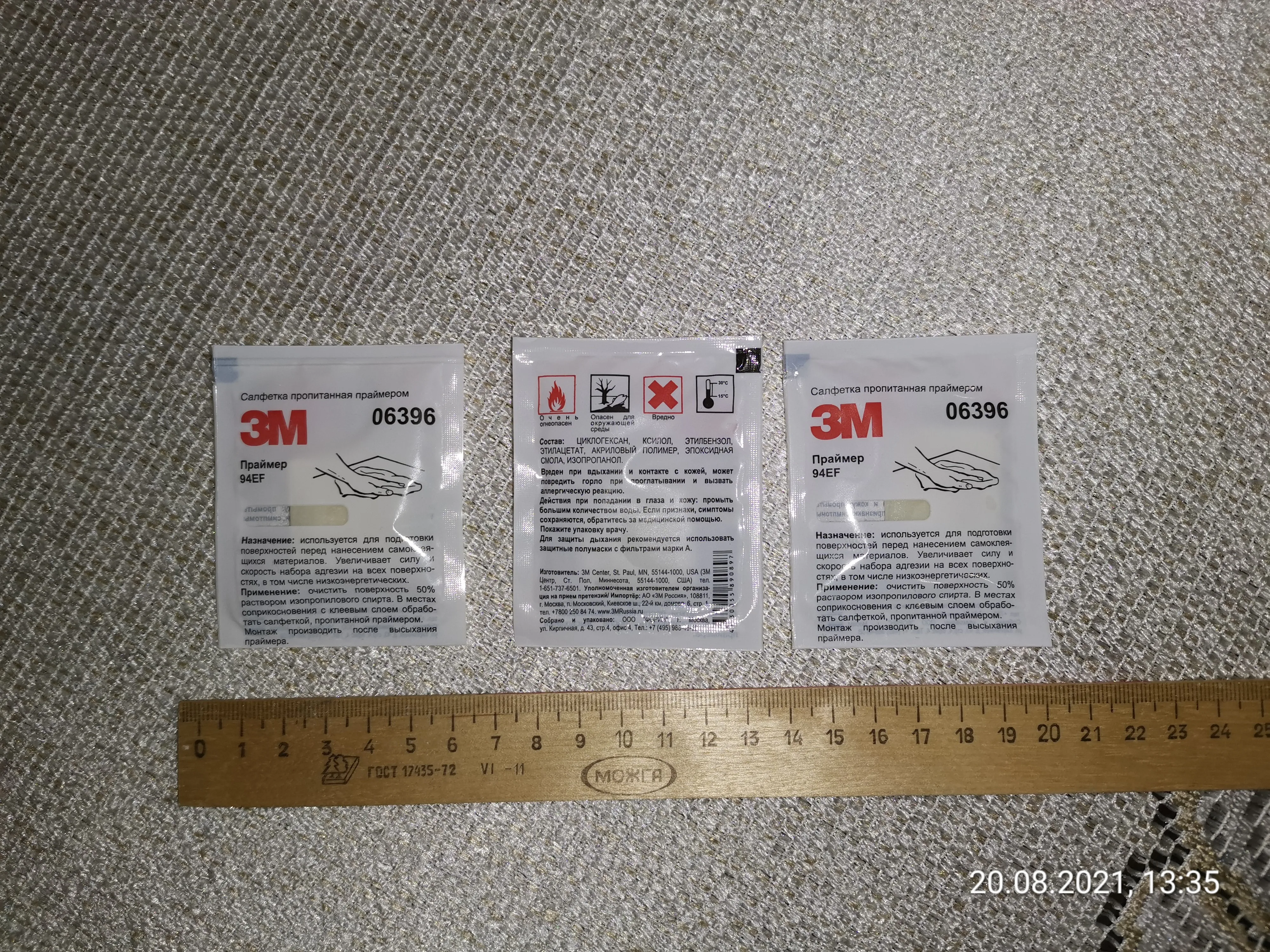 Салфетки, пропитанные праймером 94EF от 3М. Упаковки 3/25 шт.