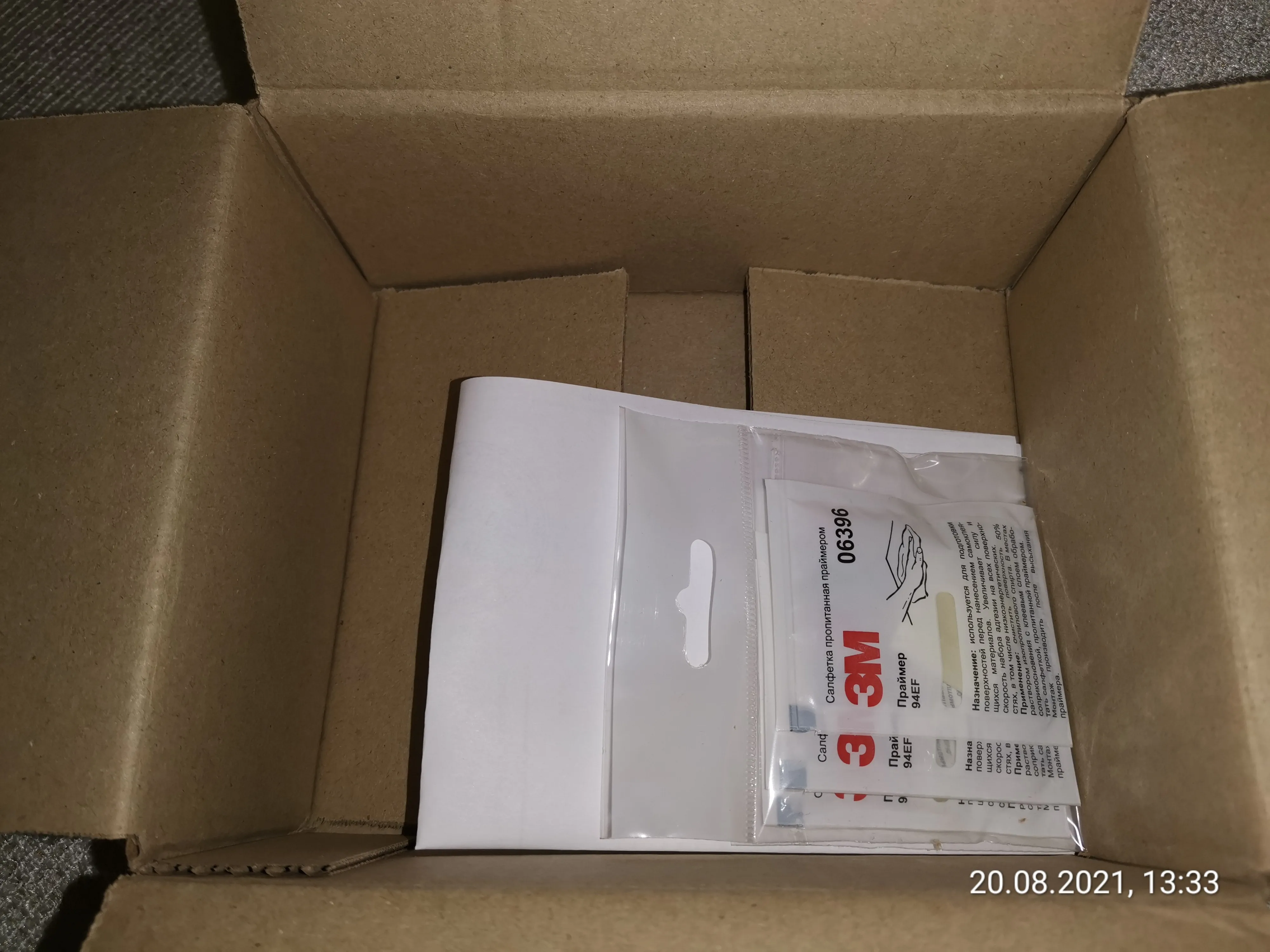 Заказ (Салфетки - 3М пропитанные праймером 94EF) пришел в Ярославскую область, г.Тутаев, через 7 дней после оплаты. Я думаю, что это быстро, отправка была из России. Трек отслеживался на всем протяжении следования посылки. Доставил курьер. Упаковано не плохо, дошло целым. Качество товара пока не могу оценить, внешне вроде все соответствует описанию. Будем проверять. Надеюсь в будущем сделаю ещё заказ, если товар будет соответствовать.Oleg K. 23 августа 2021