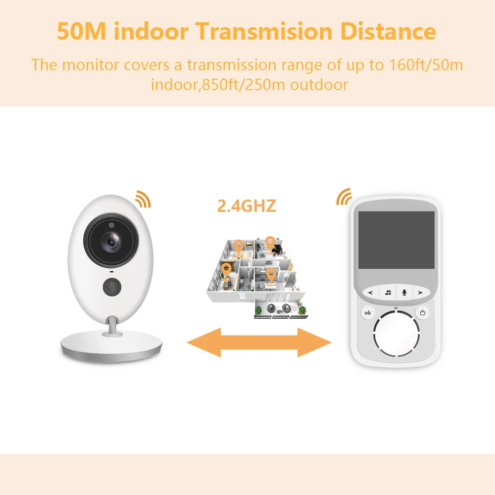 Радионяня с камерой, Беспроводная музыкальная видеоняня с ИК-камерой, мониторинг температуры, Радионяня VB605, детский телефон