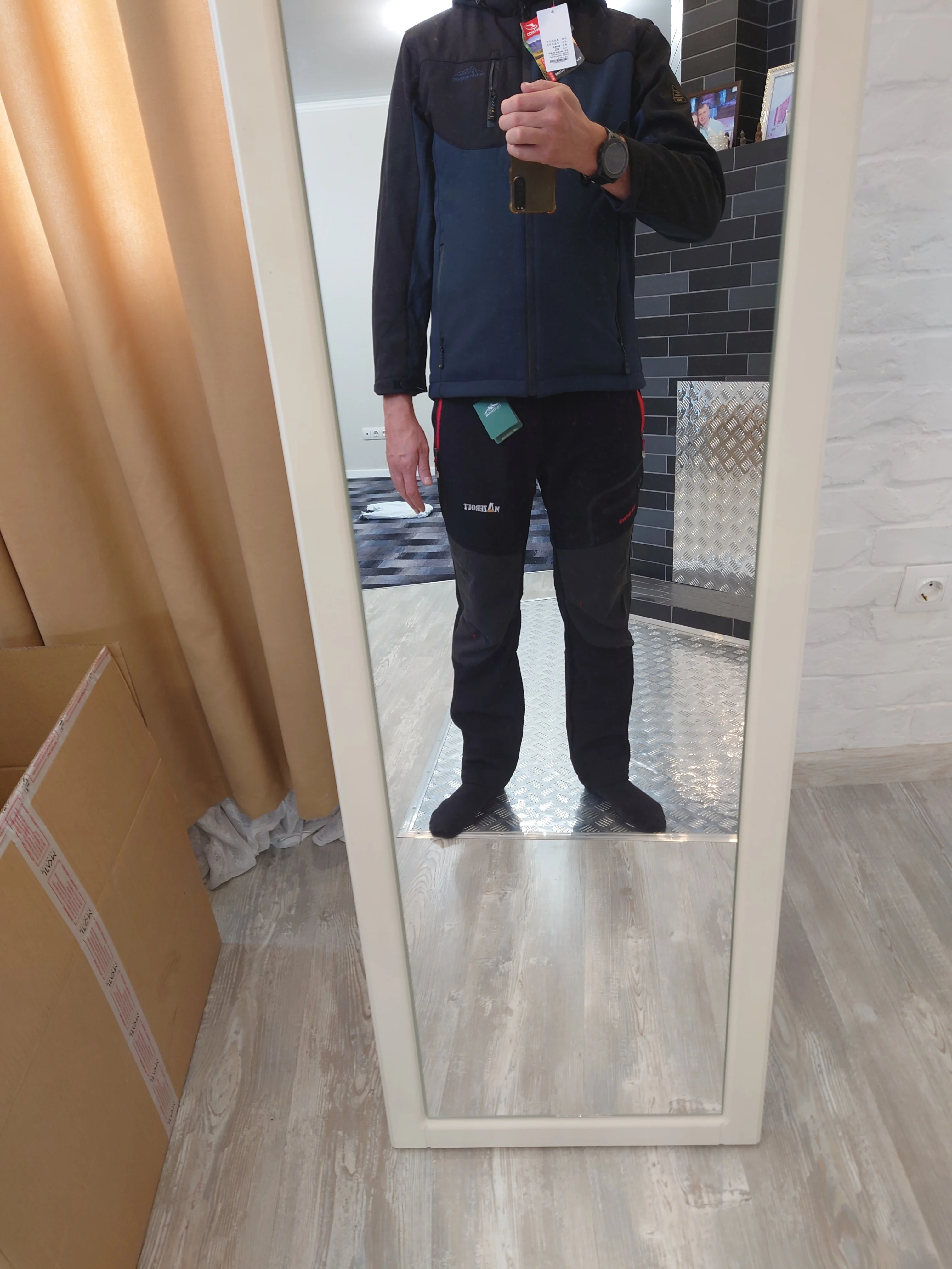 Товар оставил двоякое чувство. Товар пришел за месяц в Подмосковье. Раньше расчетного дня на 5 дней. Пошито все аккуратно. Нет торчащих ниток, нет полупростроченных швов . Молнии все водонепроницаемые, вшиты аккуратно и рабочие. В нагрудный наружный карман помещается смарфон, что по мне очень удобно. Теперь о недостатках: Есть ряд претензии - нет петельки на куртке для того что бы повесить на вешалку(( то есть надо вешать либо на плечики, либо за капюшон. - ремень на брюках ни о чем, просто отмаз - типа положили и ладно. - в рукава явно напрашиваются манжеты; - явно маломерки при моем 180/95 по расчетам надо брать 3XL, взял 5XL. Брюки подошли отлично, с небольшим запасом для подогрева. Куртка просто впритык вроде и хорошо, но если активно двигаться , то явно маловата. Ну явно не 5XL, максимум 4XL. Причем если на брюках есть этикетка с размером, то на куртке нет совсем. Посему не понятно - или продавец положил не тот размер,. толи надо было брать 6XL.Alexander B. 6 октября 2023