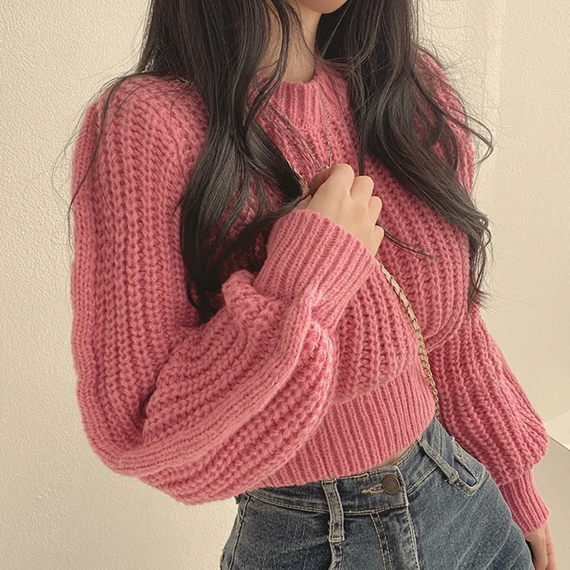 Женский вязаный свитер с круглым вырезом, свободный простой пуловер с длинным рукавом в винтажном стиле, осень 2022