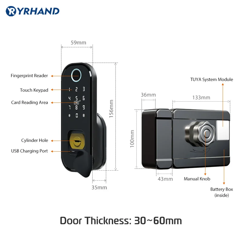 - Unlock method:Fingerprint, App, code, M1 Card, key