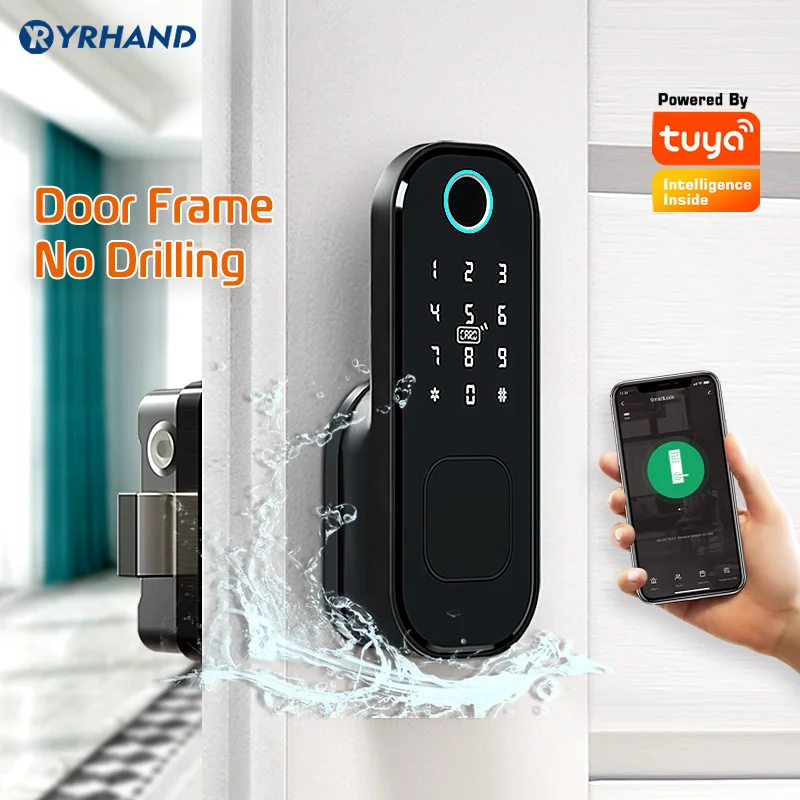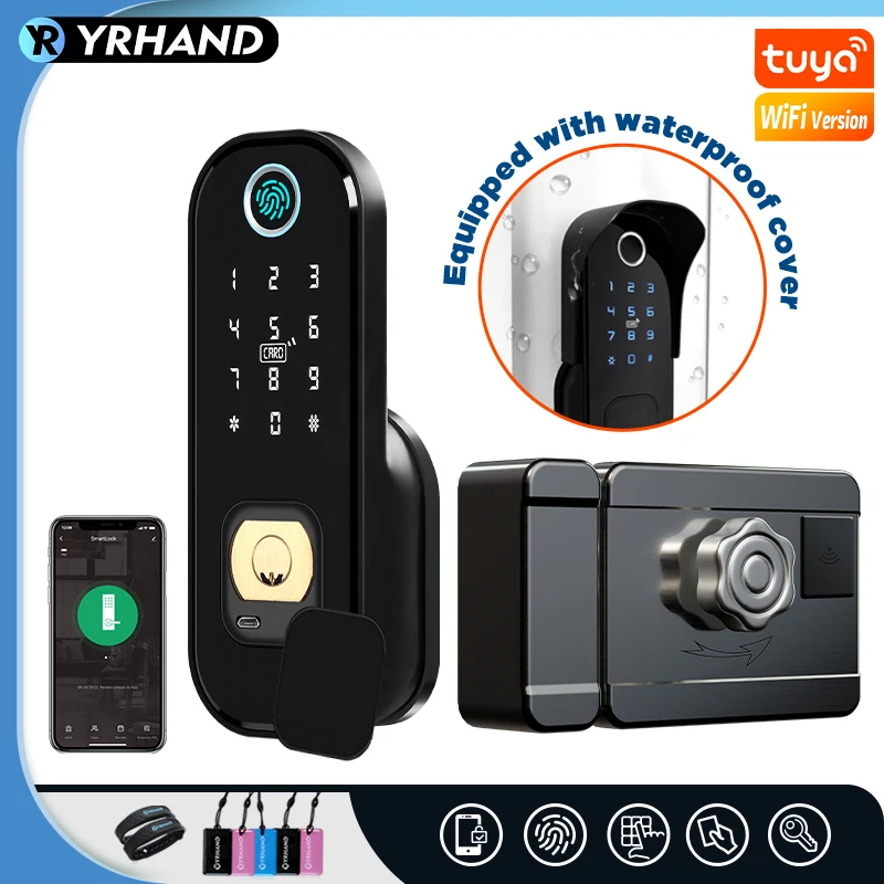 Дверной смарт-замок Tuya, водонепроницаемый замок с Wi-Fi и сканером отпечатков пальцев, с цифровым кодом, врезной