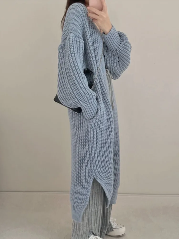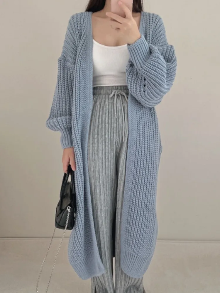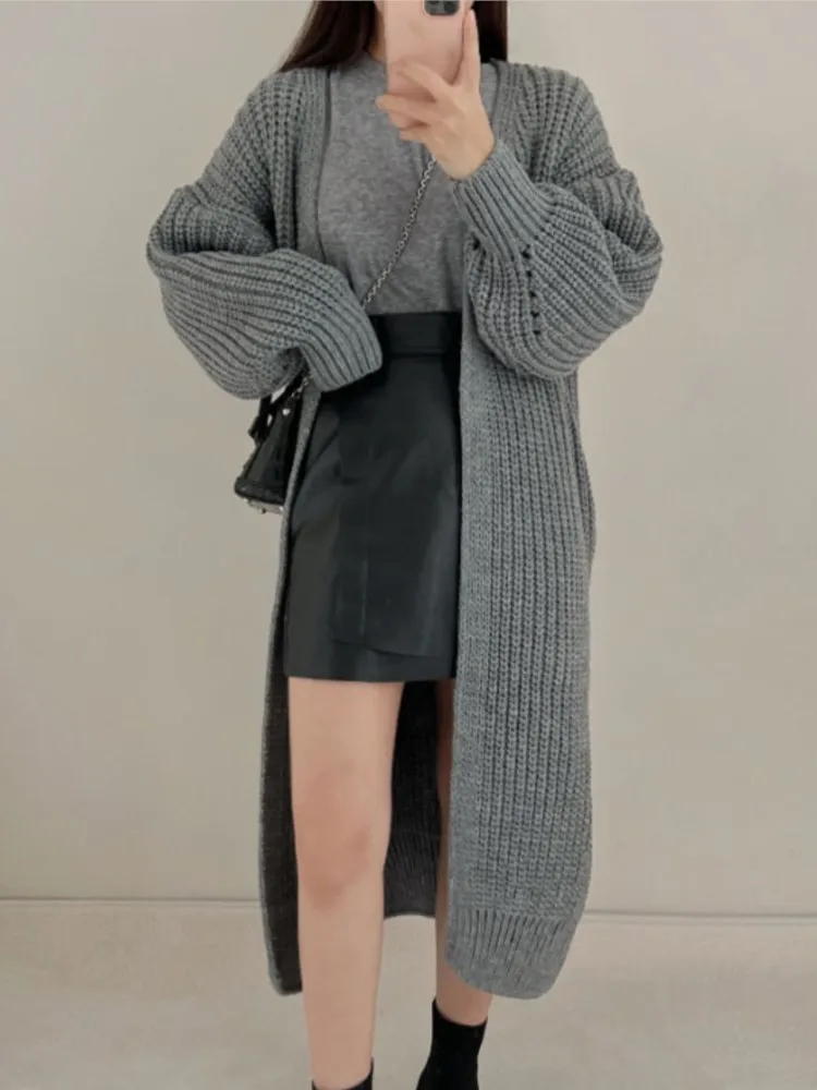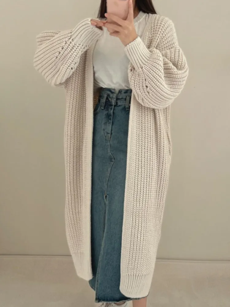 Женский вязаный кардиган с длинным рукавом, Свободный Повседневный Однотонный свитер с открытыми пальто, корейская мода, уличная одежда, женская зимняя одежда