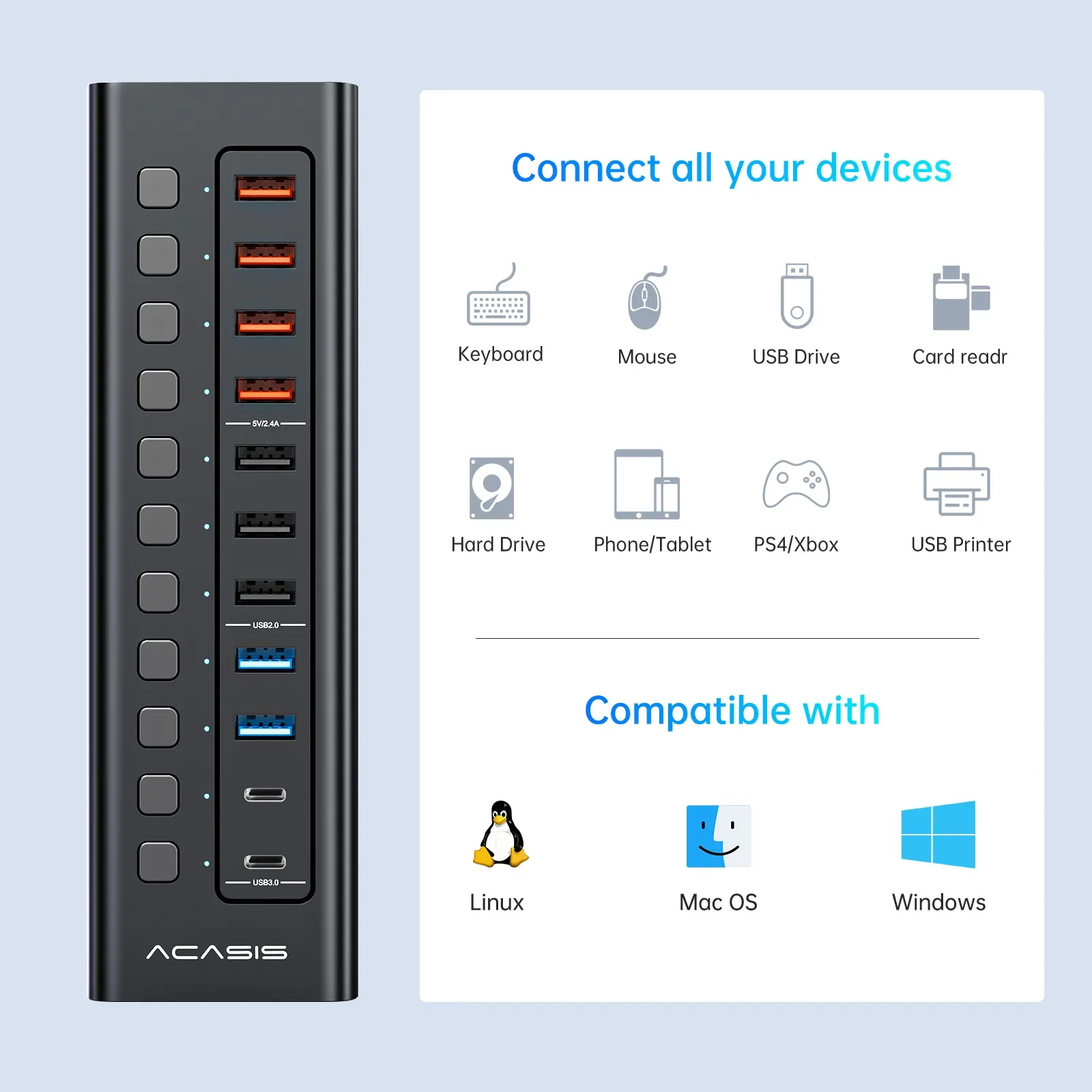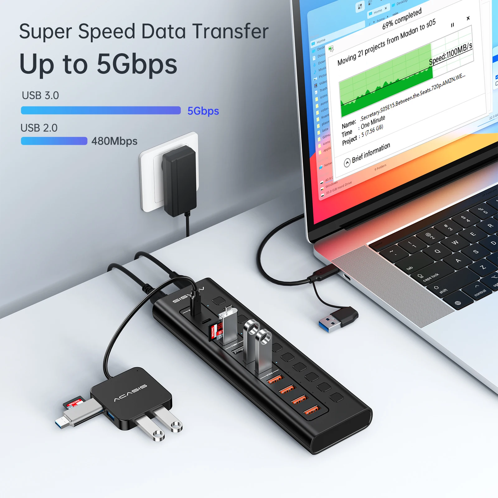 Acasis Type - C концентратор 11 портов USB - C концентратор многоUSB шунт док быстрой зарядки USB 3.0 персональный коммутатор ноутбук Mac Pro usb разветвитель разветвитель usb картридер картридер переходник usb на type