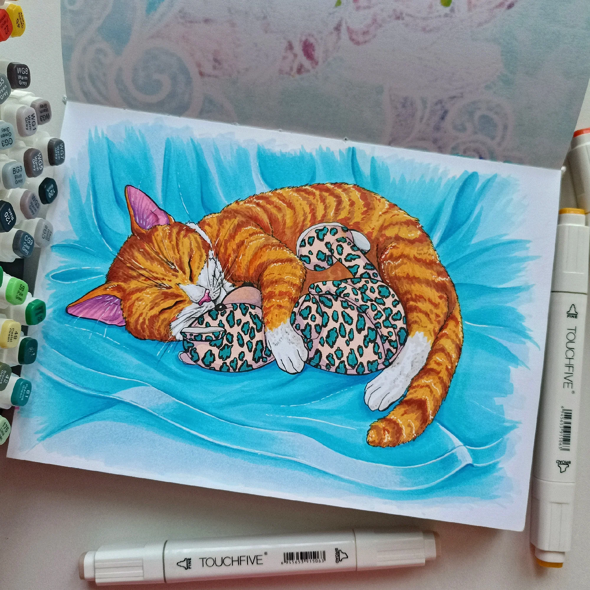 Маркеры пришли за три дня, доставил их курьер! Продавец в подарок приложил открытку, стикеры, два простых карандаша, точилку, две разные черные ручки, белую ручку, блендер для смешивания цветов и пенал. Маркеры хорошие, цвета сочные, палитра отлично подходит для fashion-эскизов. Наконечника два, долото и пуля. Черный цвет в самом начале немного тек, но я дала ему полежать неделю и все пришло в норму. Мне все очень понравилось, спасибо продавцу!