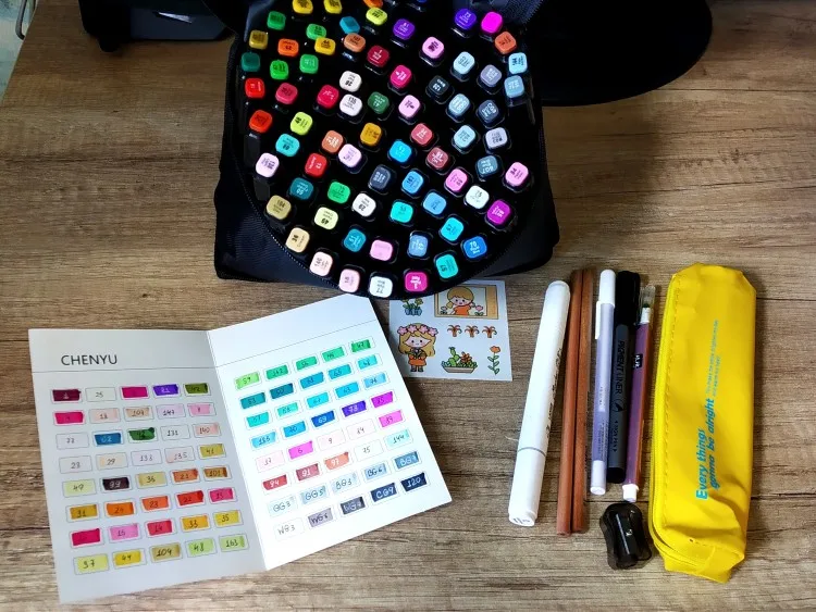 Buy 168 colors set:Send (High quality line marker× 2 highlight pen × 2, needle pen × 2, blender 0 pen × 2, Cute stickers×2,Small pencil case× 1, Sketch book × 1) for free