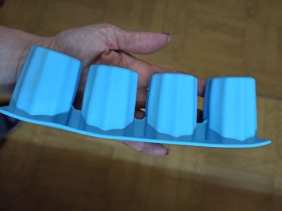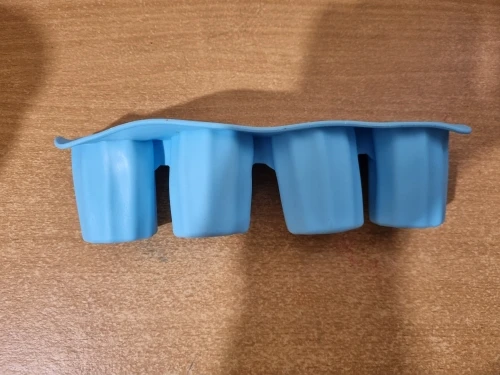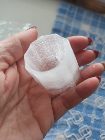 Форма приехала помятой, не знаю что она уж пережила, что ее смяло. Стаканчики получаются очень маленькими, грамм на 30, кривые косые, с тонкими не симметричными стенками, но с толстенным дном