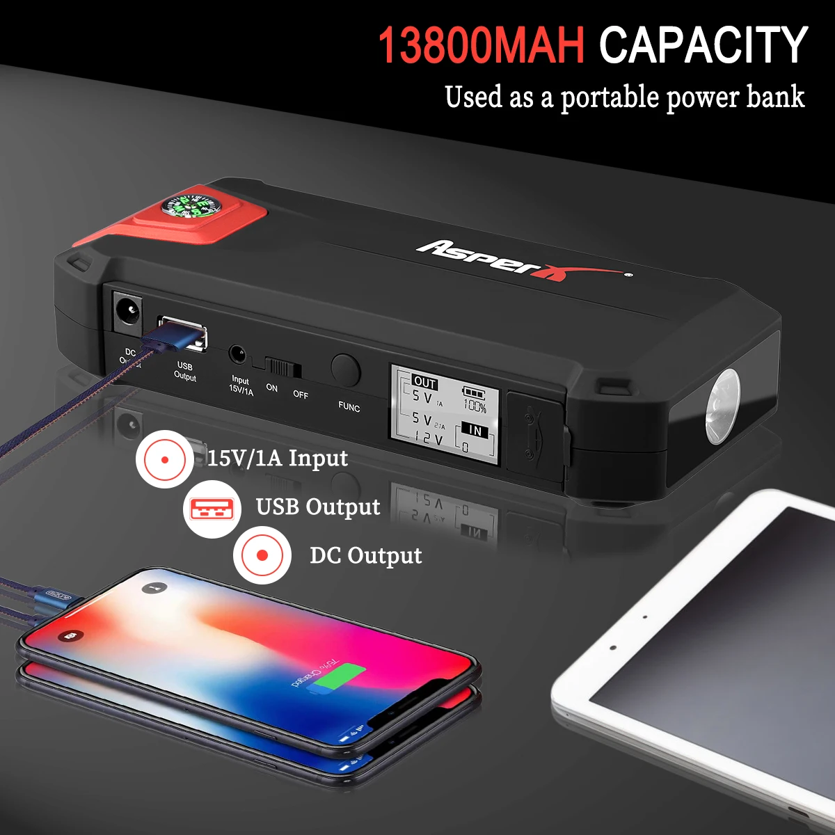 Пусковое устройство GREPRO 13800 мАч, автомобильное пусковое устройство 12 В, бустер для автомобиля, пусковое устройство, внешний аккумулятор для автомобиля