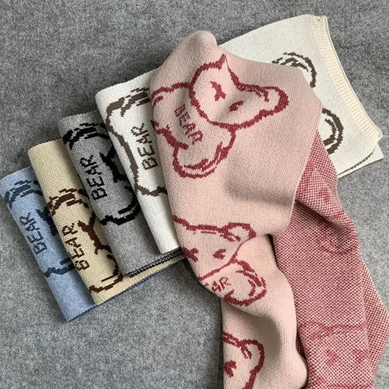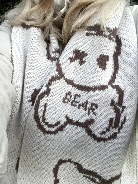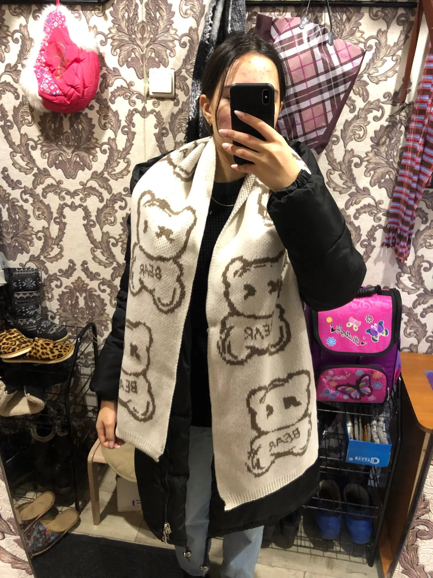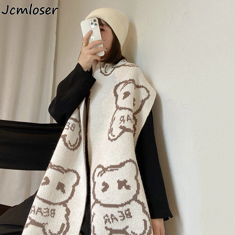 2024 корейский модный вязаный зимний женский шарф с медведем парные теплые кашемировые шарфы шали Шейная бандана Пашмина женский шарф