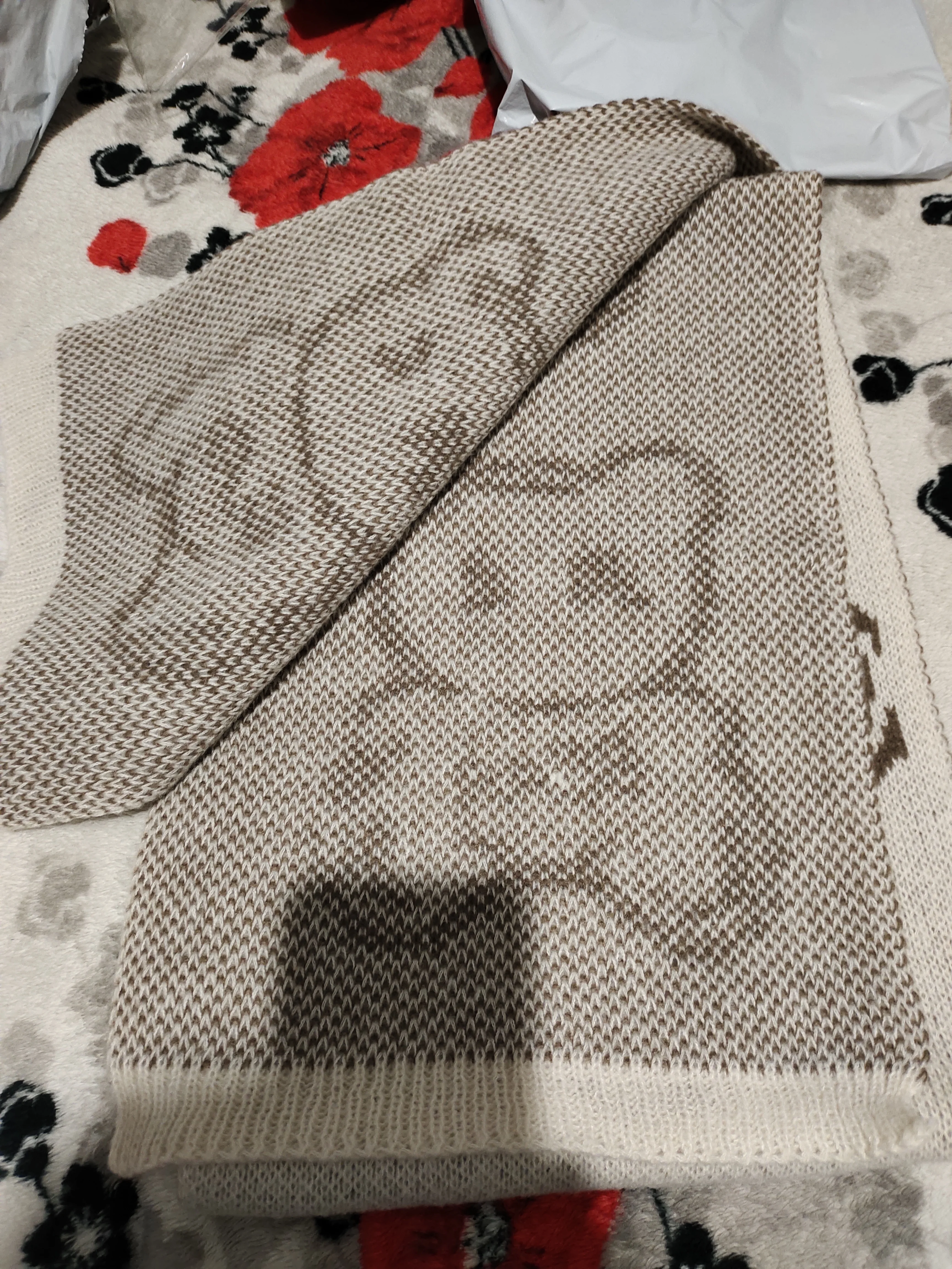 Очень теплый и крутой шарф, покупали ребенку, всем довольны, рисунок четкий, ниток и запаха нет, будем носить с удовольствием! Спасибо продавцу!Polina B. 24 декабря 2022
