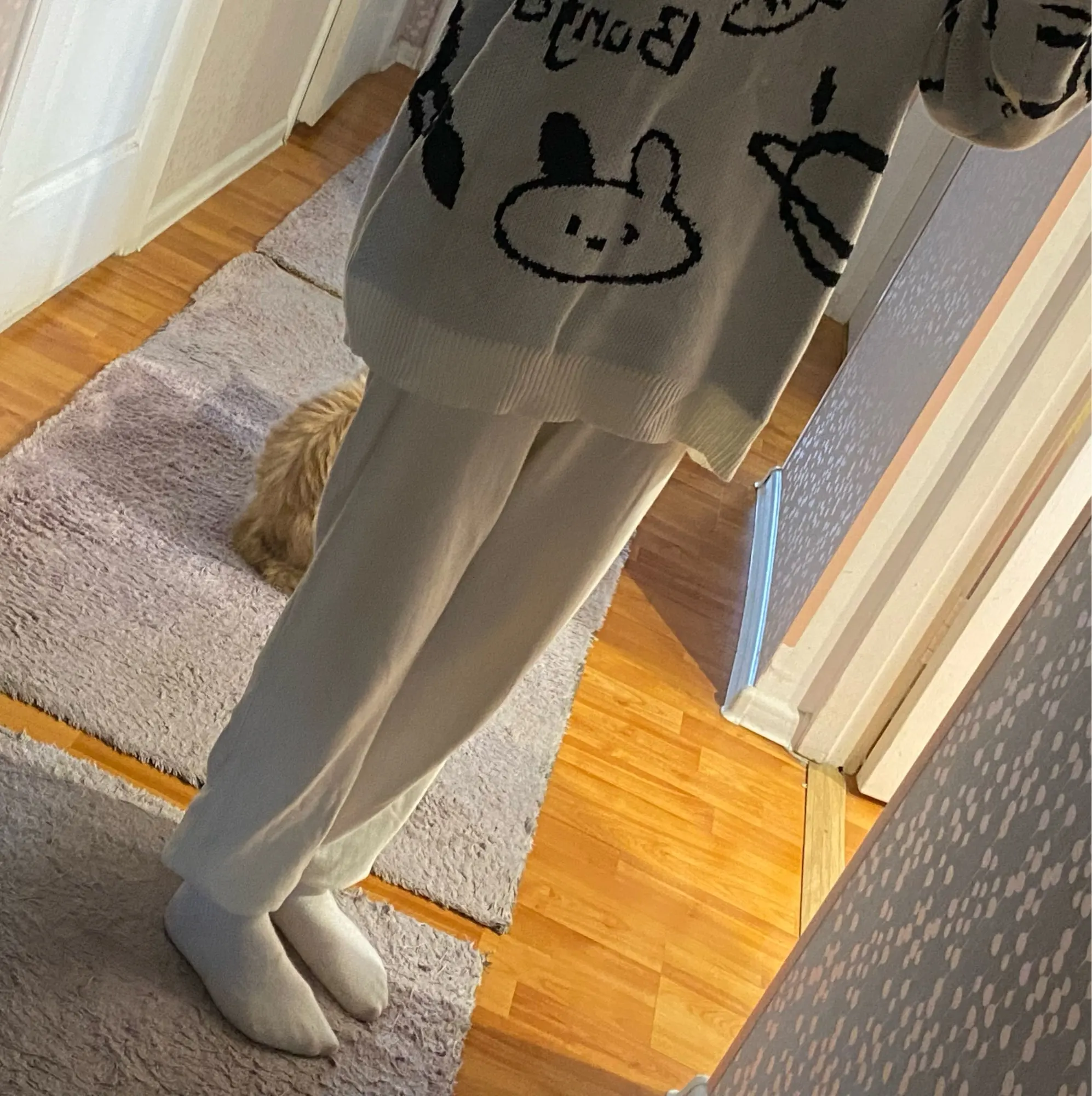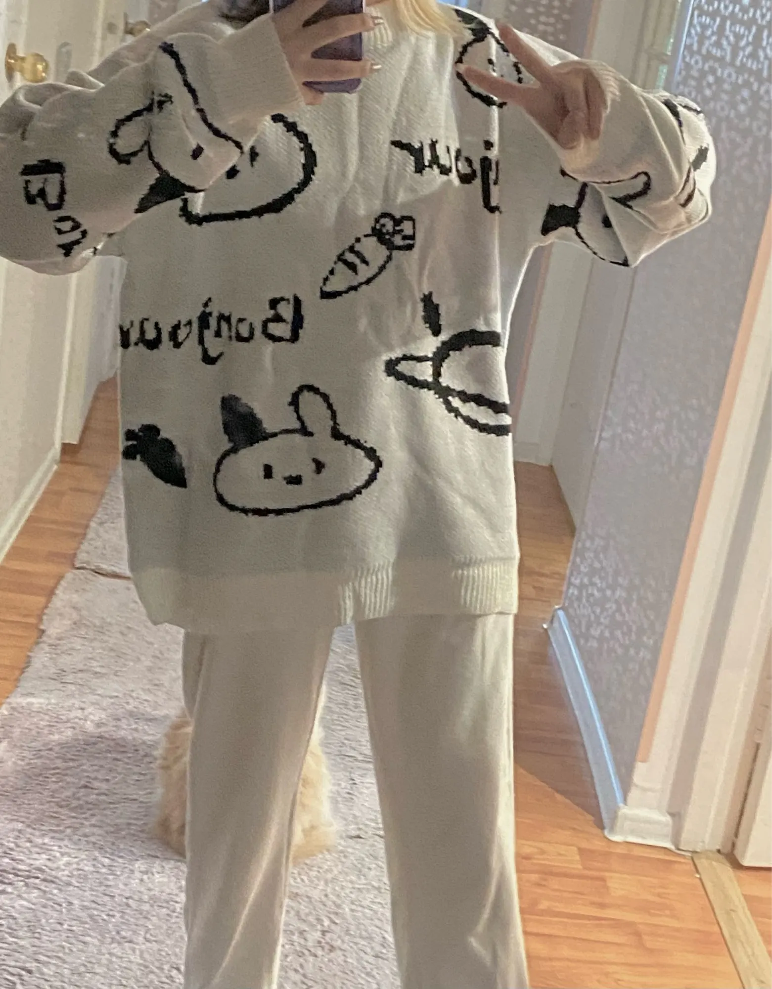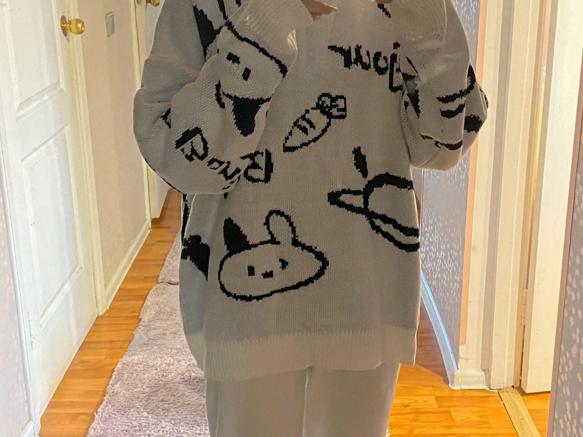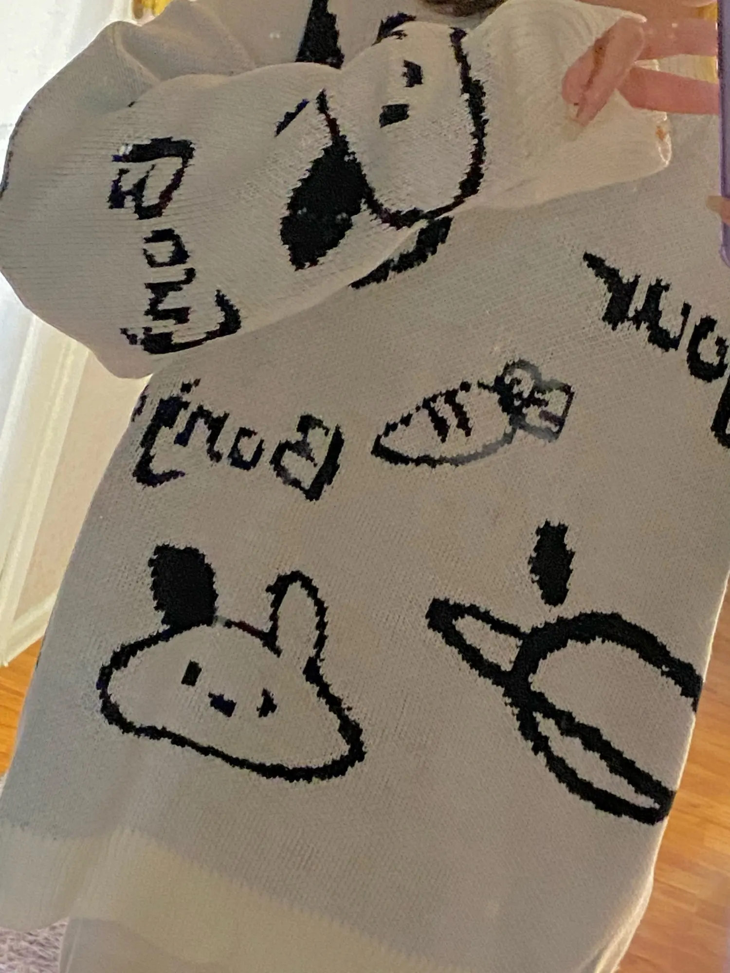 Милый ретро пуловер Y2k в стиле Харадзюку С мультяшным кроликом и круглым вырезом, свитер с узором, вязаный теплый свободный свитер большого размера для женщин