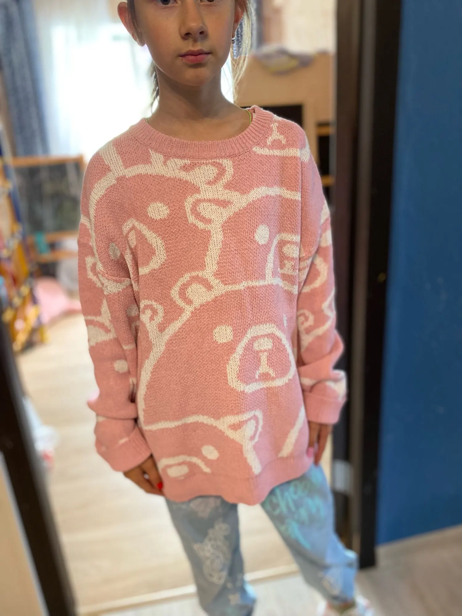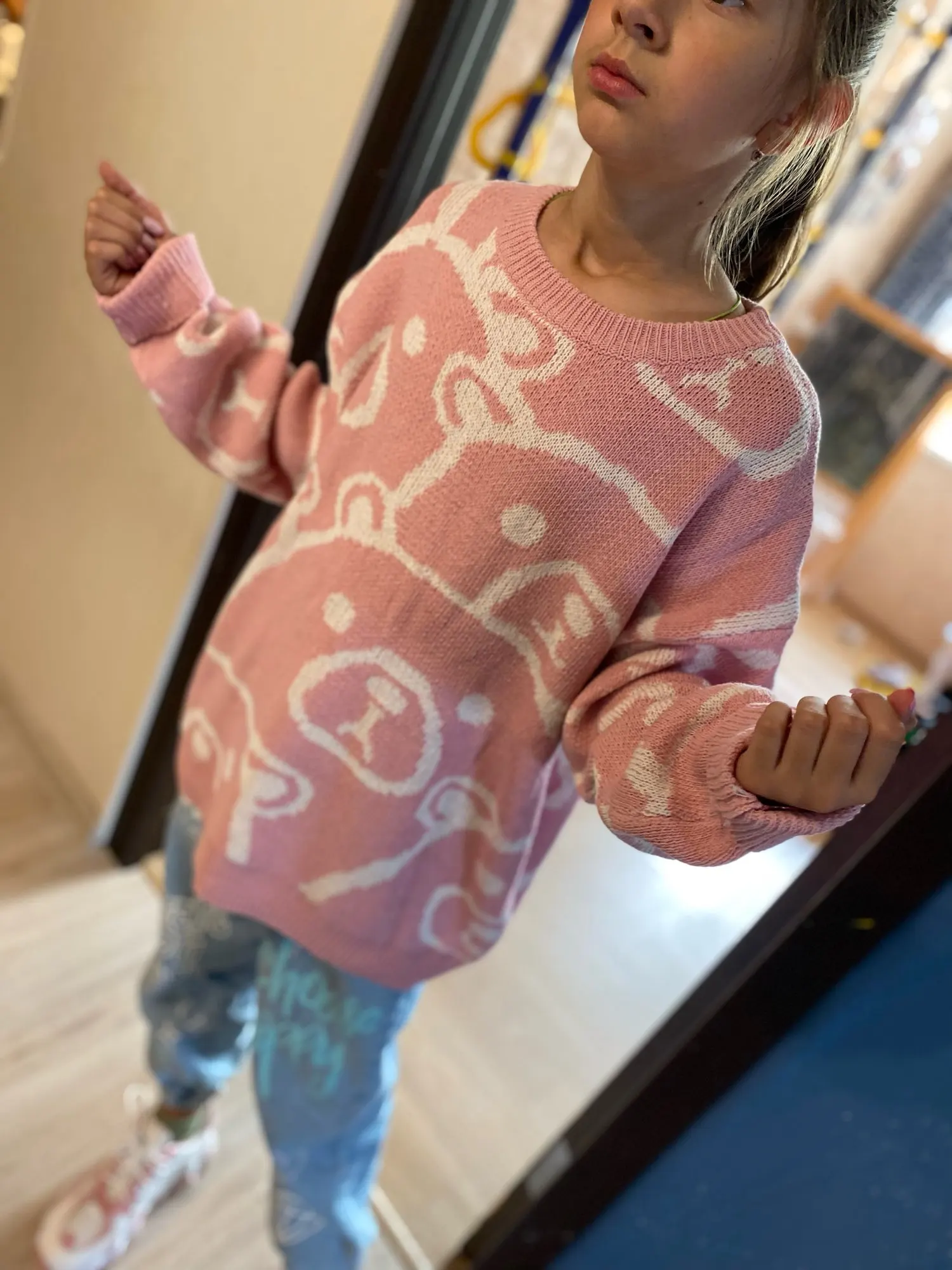 Спасибо, свитер понравился! На девочку 11лет немного великоват. Рост 152см на фото. Но ребёнку оч понравился свитер, не захотела снимать даже! Очень милый. Спасибо продавцу!