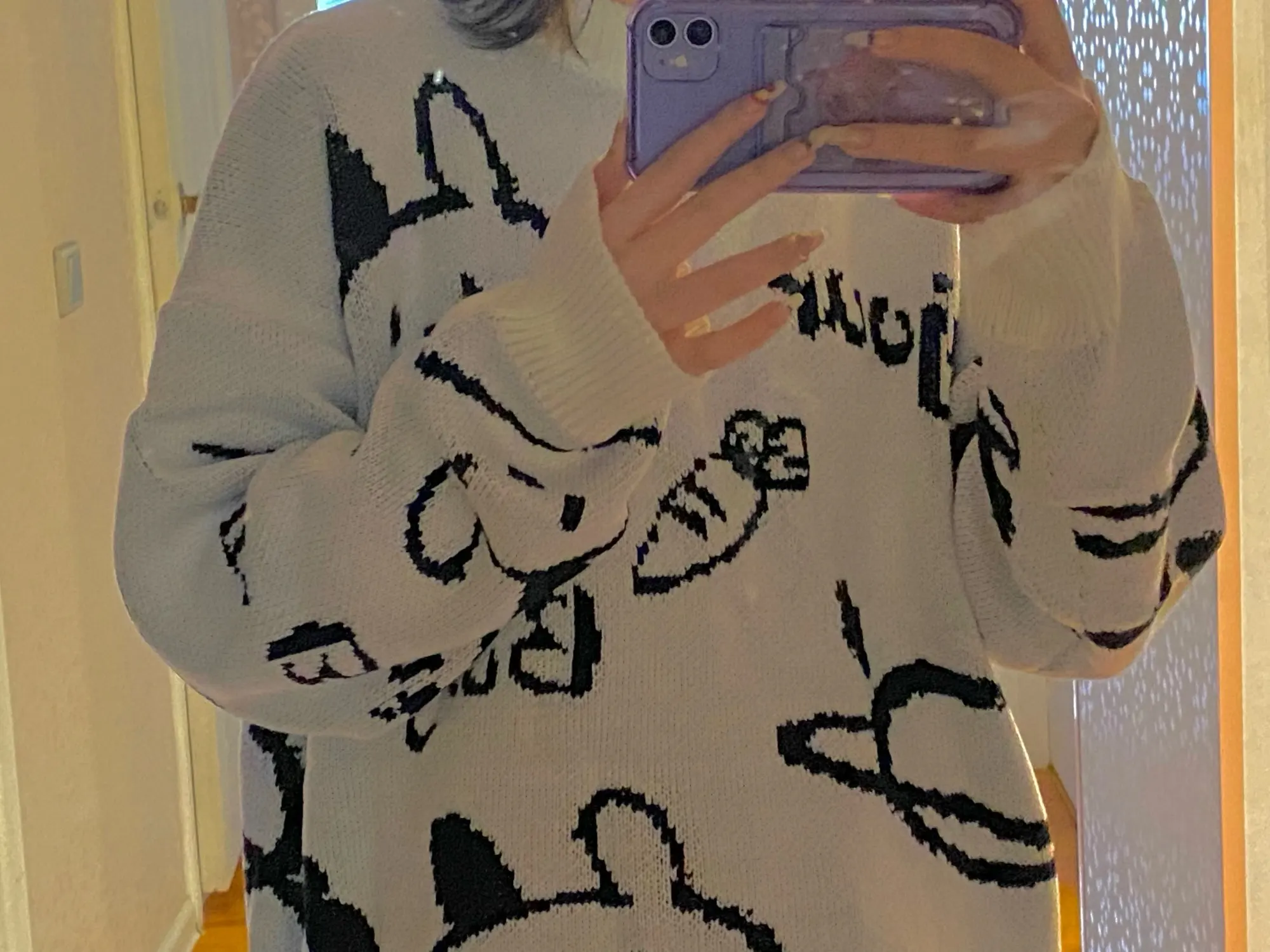 Рисунок немного расплывчатый будто. Сама кофта какая-то короткая. А вроде XL Рост 163, об 91 оп 87 Она короче вещи размера L А так.. Очень мягкая, увесистая. Погуляла в ней. Норм. Удобненько. Тёплая, кстати. В 15-19 градусов жарко не было