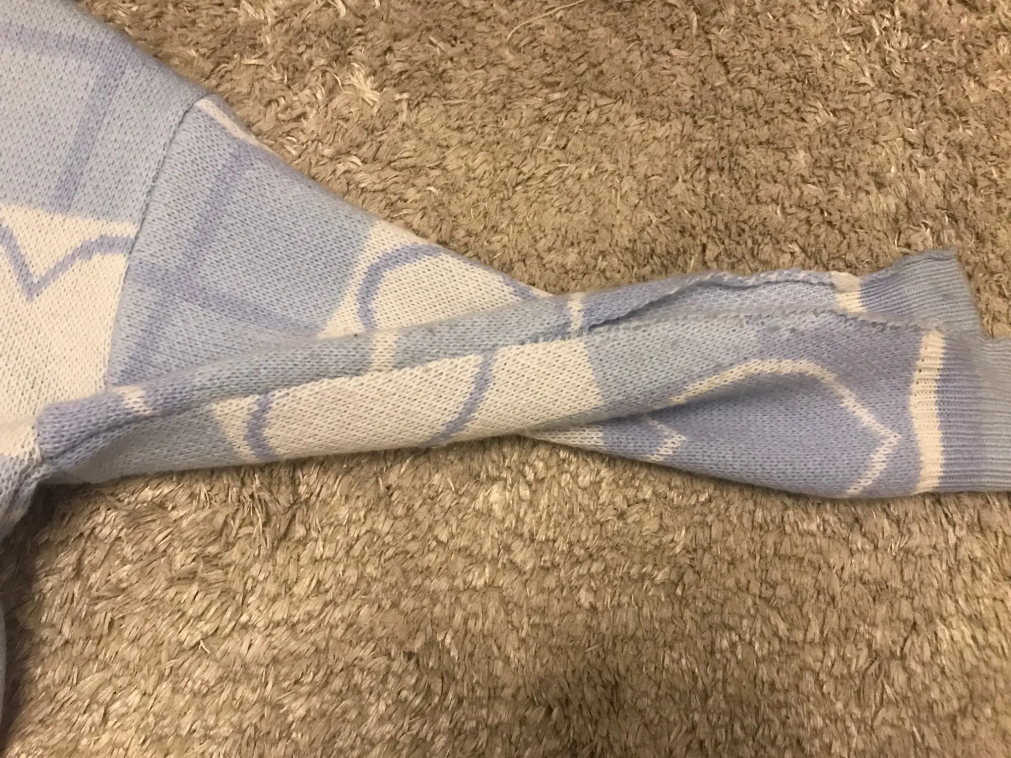 Ранее я оставляла хороший отзыв,я её проносила меньше недели и шов на рукаве разошёлся.Возможно это моя вина то что я отрезала нитку которая торчала,но все же прошу продавца обратить внимание на мой отзыв.Так же я не говорю что эта кофта плохая,мне она очень понравилась, когда она только пришла и она очень тёплая