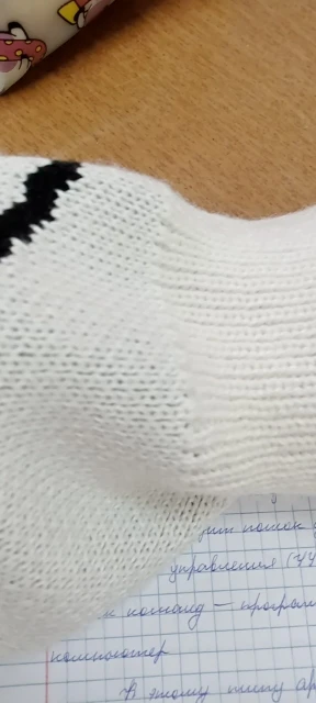 свитер по качеству хороший, но из-за того что там черная подкладка свитер серо-белые, а не белый, смотрится некрасиво, свитер потерялся почти на месяц, пыталась около 2-х недель связаться с продавцом, но он не отвечал, сам свитер теплый и толстый, имеет противный запах