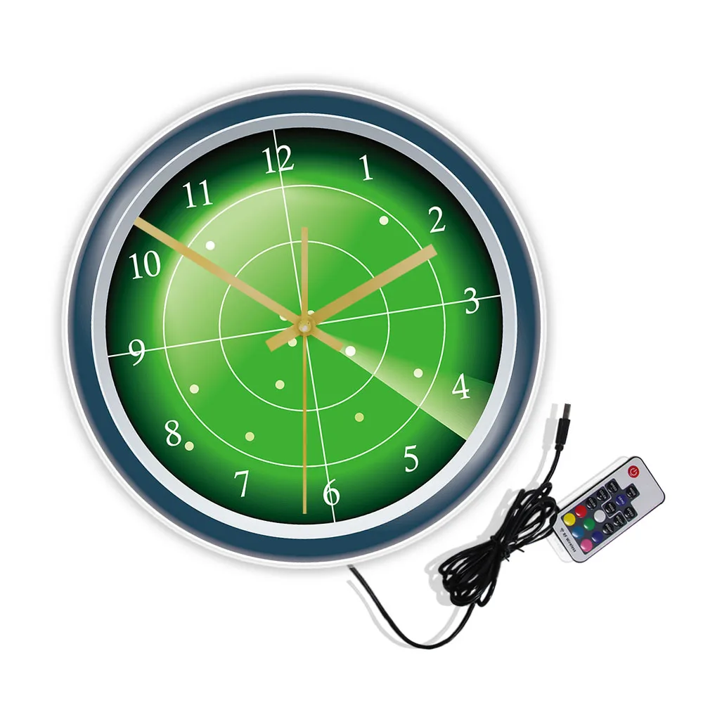 Военные зеленые Радиолокационные дизайнерские настенные часы Hud экран с целевой стеной искусство самолет сканирование воздушного движения декоративные настенные часы