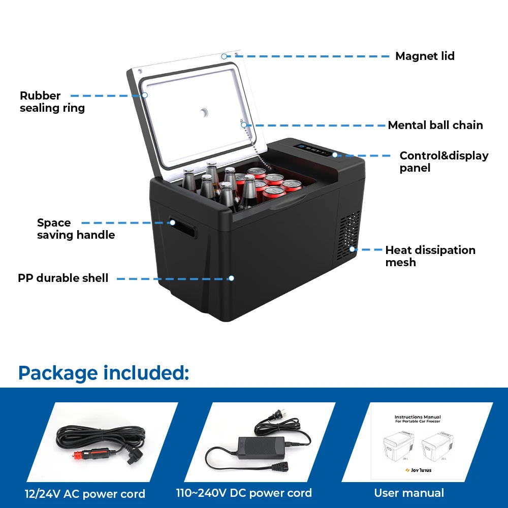 Автомобильный холодильник Joytutus, 22 л, мини-холодильник 28 л, небольшая морозильная камера 12 В, компрессор, портативный охладитель 220 В для домашнего использования, для транспортных средств, грузовиков