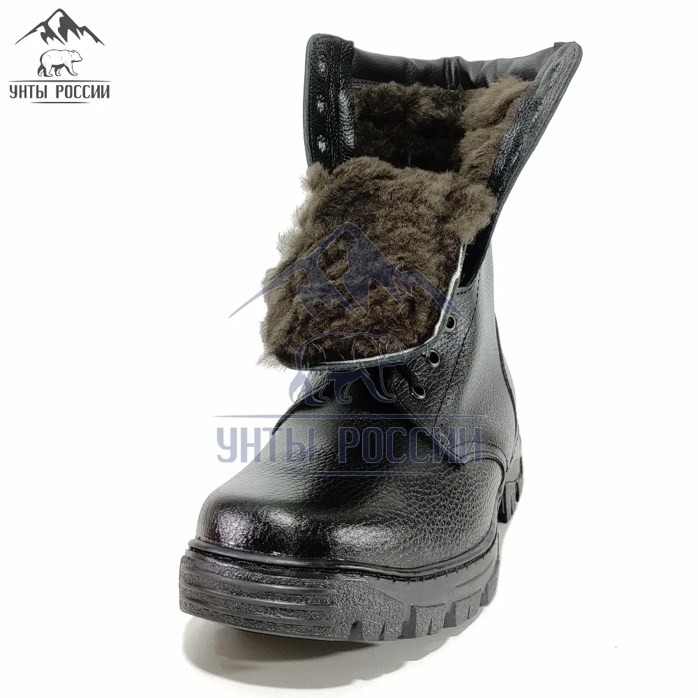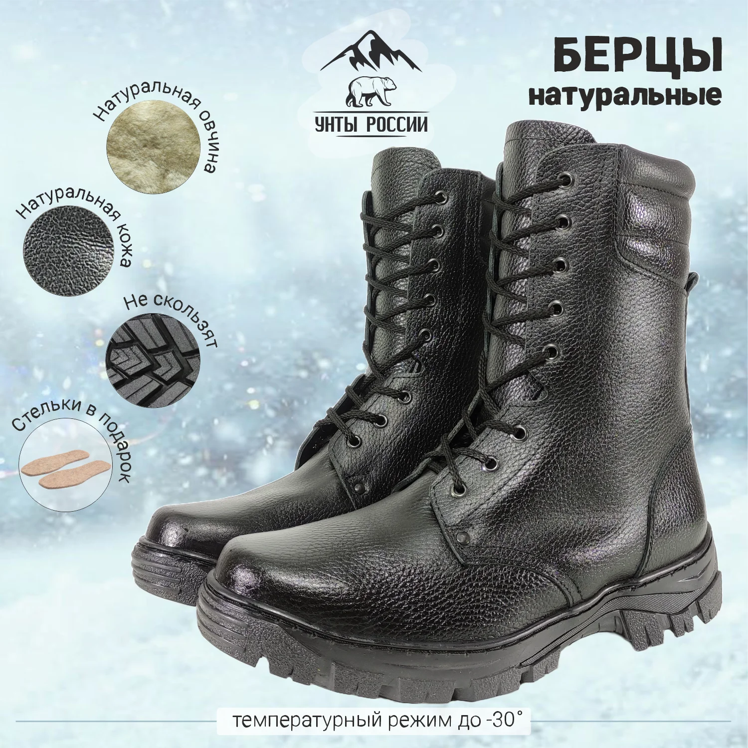 Берцы армейские зимние натуральные черные кожаные с мехом, литая подошва, сапоги, 40093, Унты России