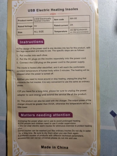 всё пришло отлично продавцу пять звёзд рекомендую (нагрев происходит в середине ступни) зимой проверим как будут греть.