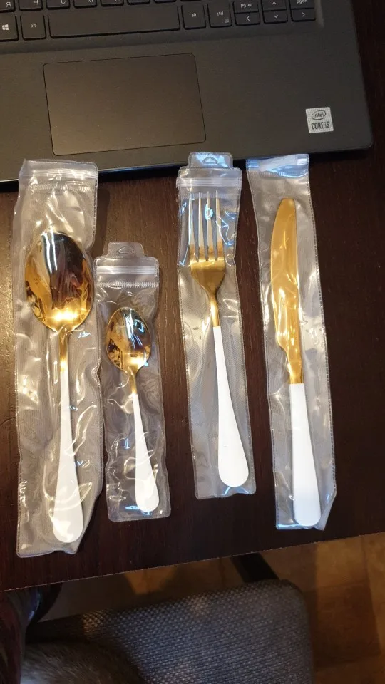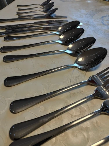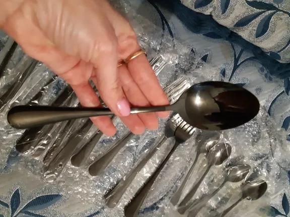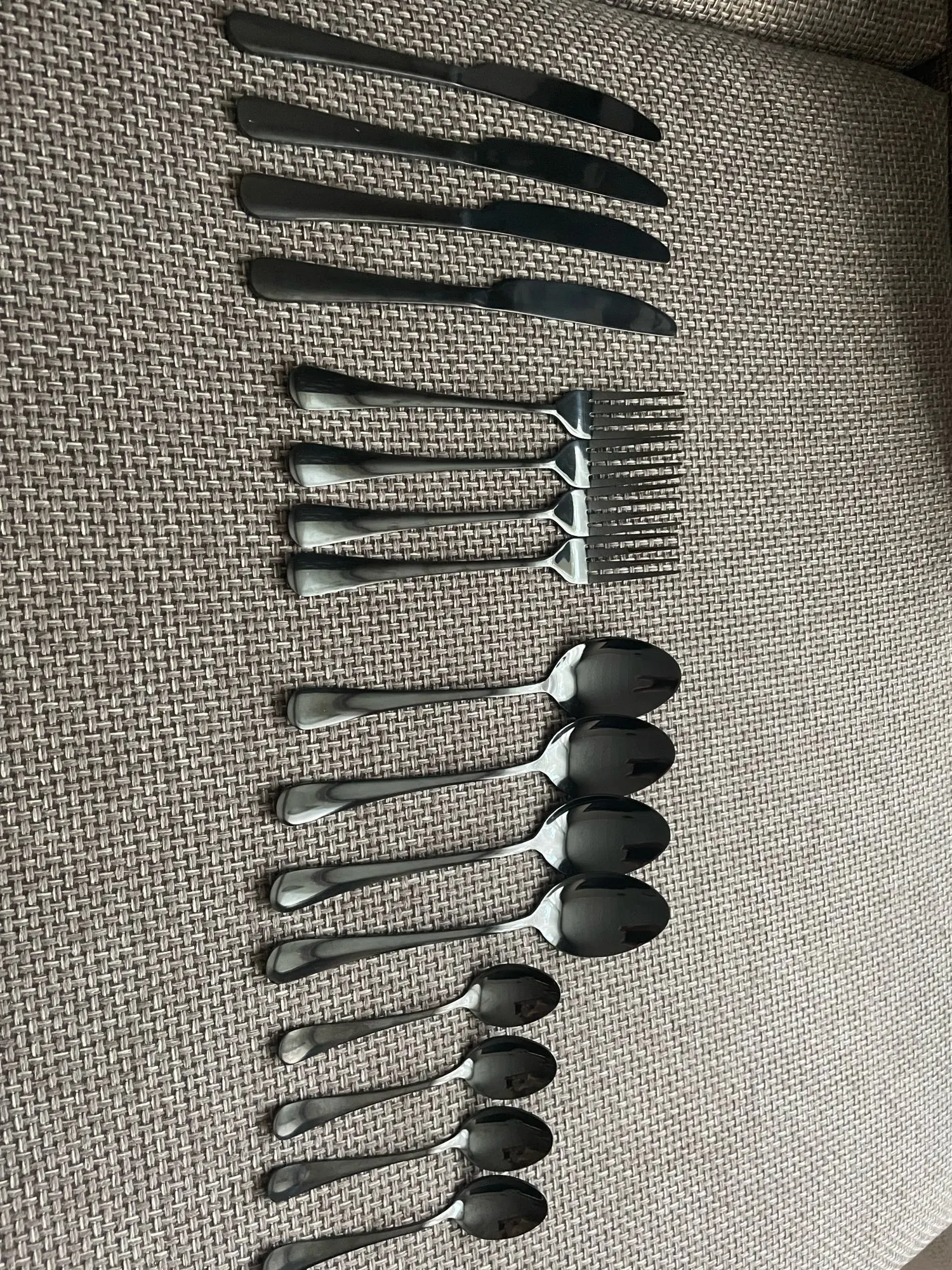 Доставка просто рекордно быстрая, чуть больше двух недель в Беларусь. Продавец написал цену ниже, чтобы не было вопросов на таможне и в целом отправил и отвечал быстро и вежливо, за что ему большое спасибо. Приборы красивые, качественные. Интересно получается под разными углами (в жизни выглядят черными под большей частью освещений, а на фотке под разными освещения и совершенно разный цвет). Дополню отзыв после первого раза в посудомойке