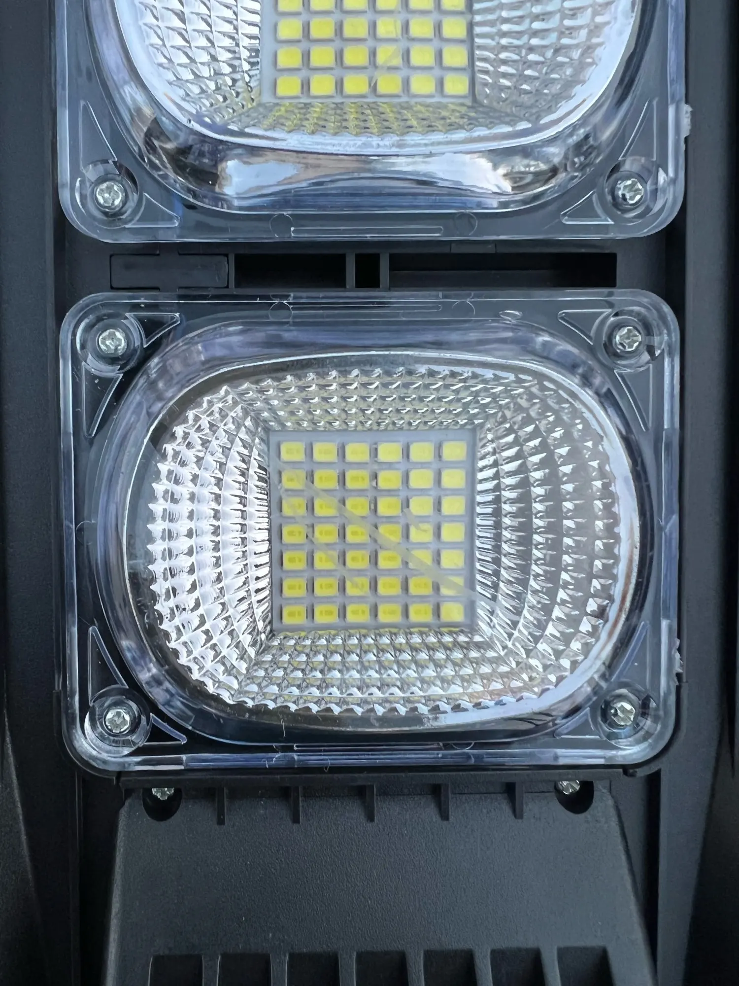 Лампы очень тонкие, выглядят очень слабыми, поврежден один из пяти ламп. Трещина была в локоть, где угол меняется. Два пульта не работают. 2 звезды для качества, потому что они хороши только для небольших районов. Они показали, как свет очень яркий, но это не так.