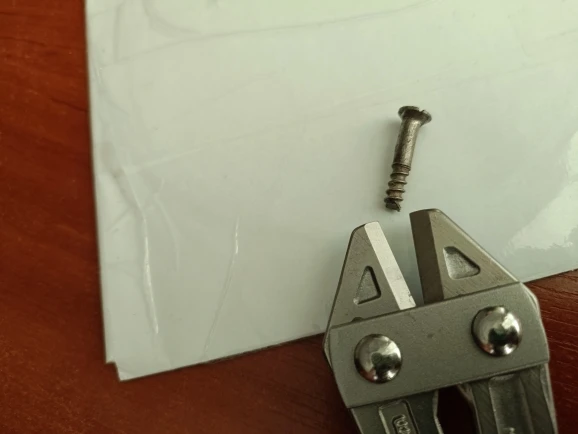 Усе добре, болторіз такий як треба. 4мм шуруп навпіл без проблем. Монету по усій довжині губок перекусити не зміг у передній частині губки не доходять одна до одної, але зовсім трохи, десь на товщину листа бумаги.