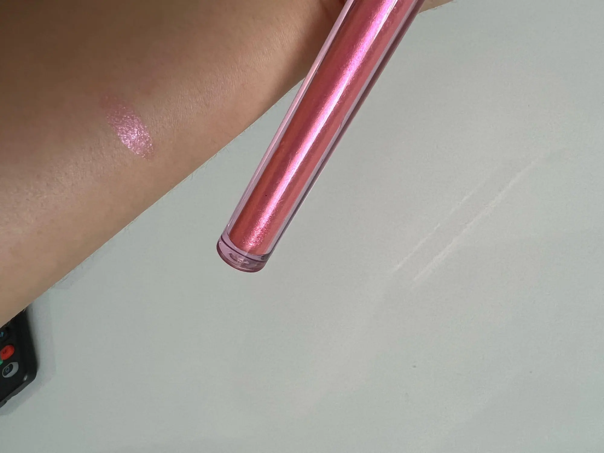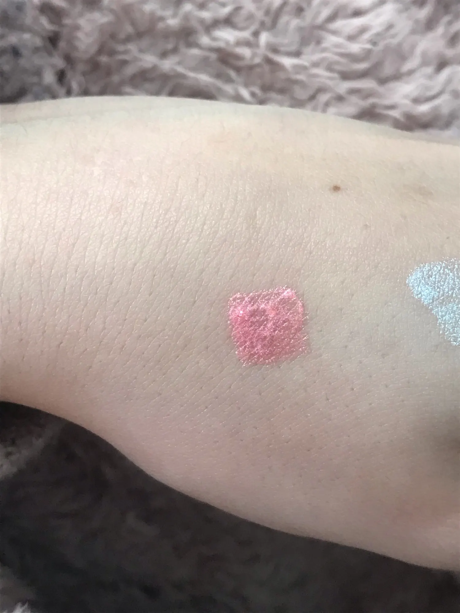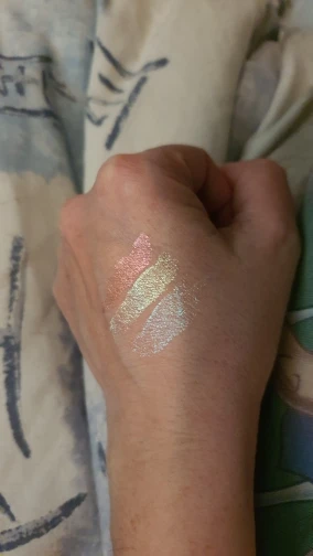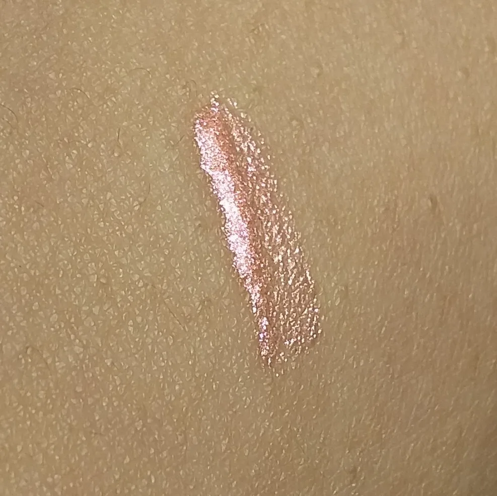 Это очень хорошее свечение для теней, но его можно использовать где угодно в качестве хайлайтера или на губах. Хотя это не очень заметно на фотографиях, Розовый тон действительно выглядит много и выглядит хорошо, вам просто нужно дать ему высохнуть. Единственная плохая вещь в том, что у него, кажется, очень мало в трубе.