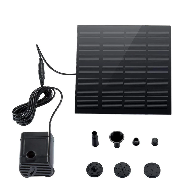 Садовый фонтан на солнечной батарее с различными насадками для распыления воды