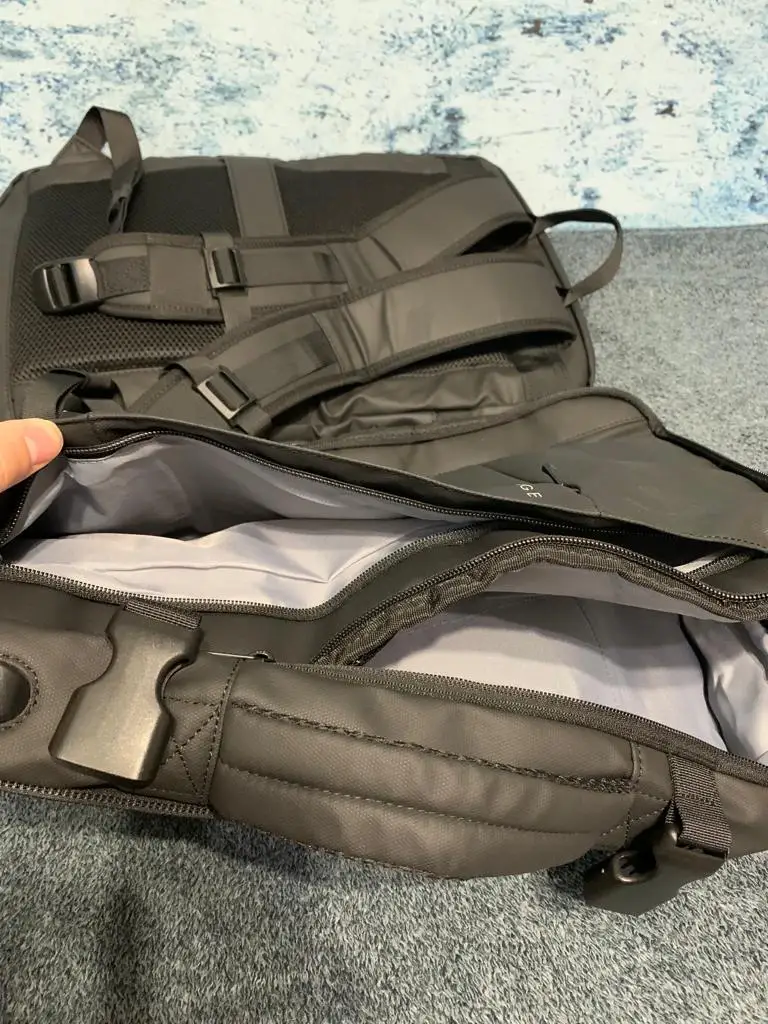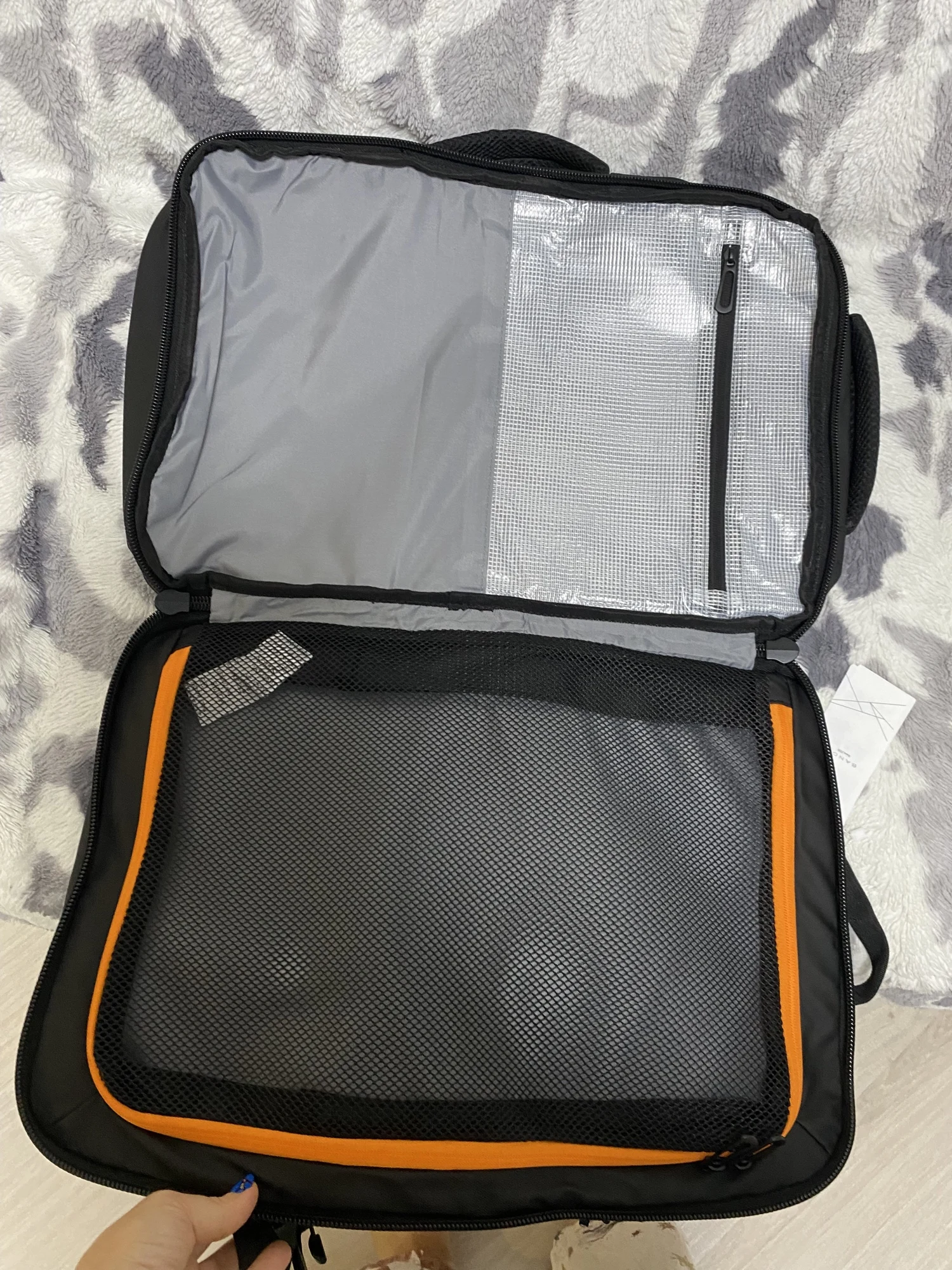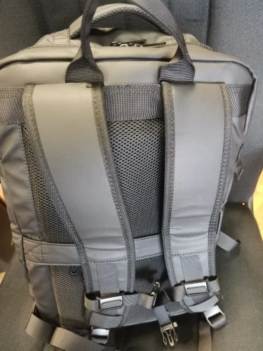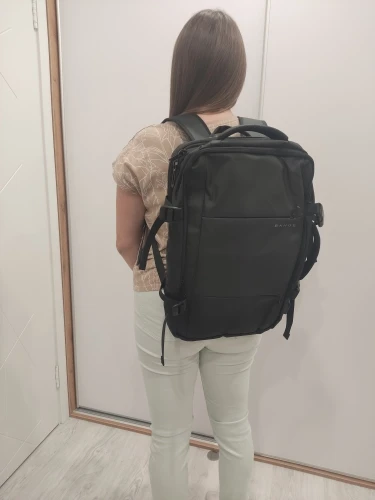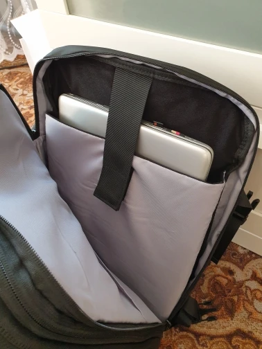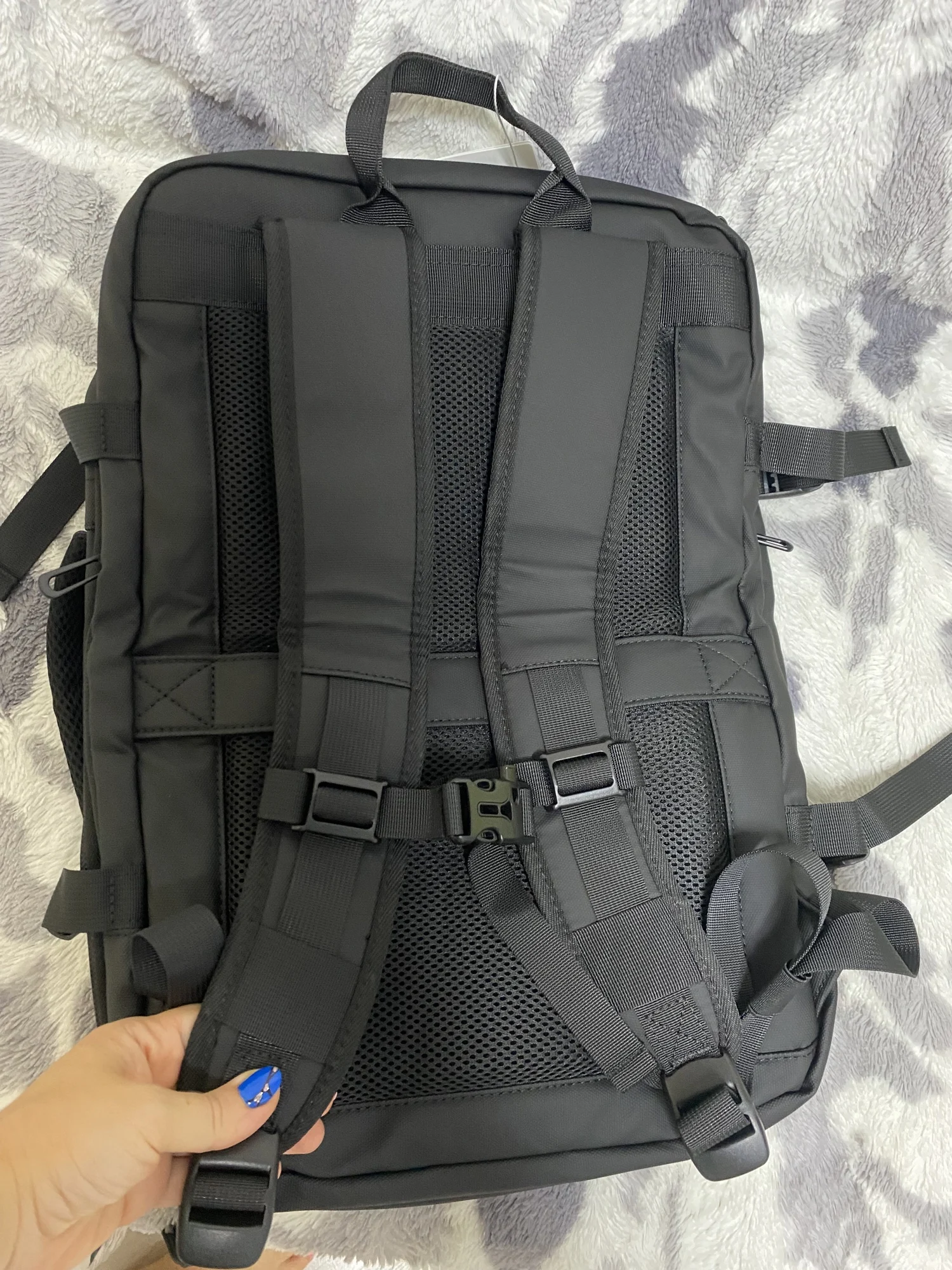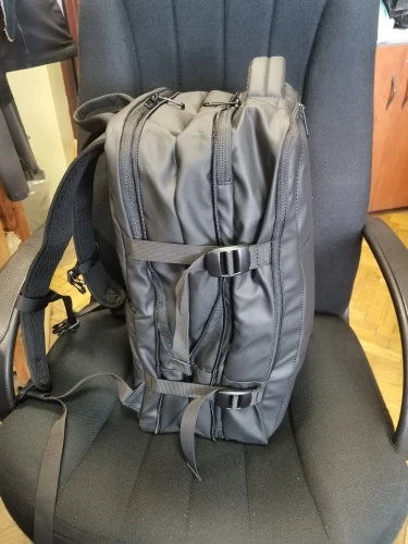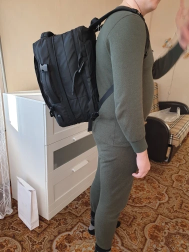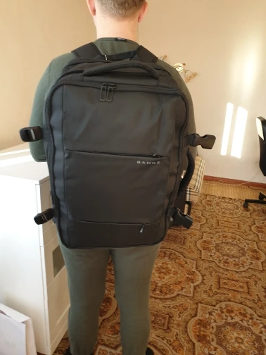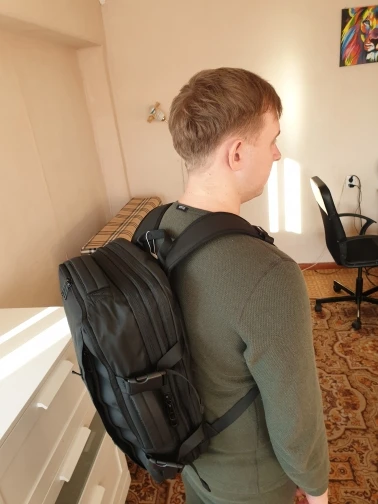 Качество рюкзака отличное. Все молнии и замки спрятаны, покрытие не мокнет. Внутри удобный карман сеткой для одежды, также на другой стороне есть карман как пакет, чтобы видимо положить щётку, шампунь, и то, что может вылиться. Много карманов. Боковые пластиковые замки только с одной стороны, с другой просто ремни не отстёгиваются. Это не портит функции рюкзака, т.к. эти замки с той стороны, где рюкзак открывается как чемодан, удобно. Единственный огромный минус рюкзак шёл 57 дней!!! Это самая долгая доставка, которая у меня когда либо была. Пришлось даже писать продавцу и уточнять местоположение заказа. Заказала 31 июля, должен был придти до 25 августа, по итогу пришёл 1 октября.