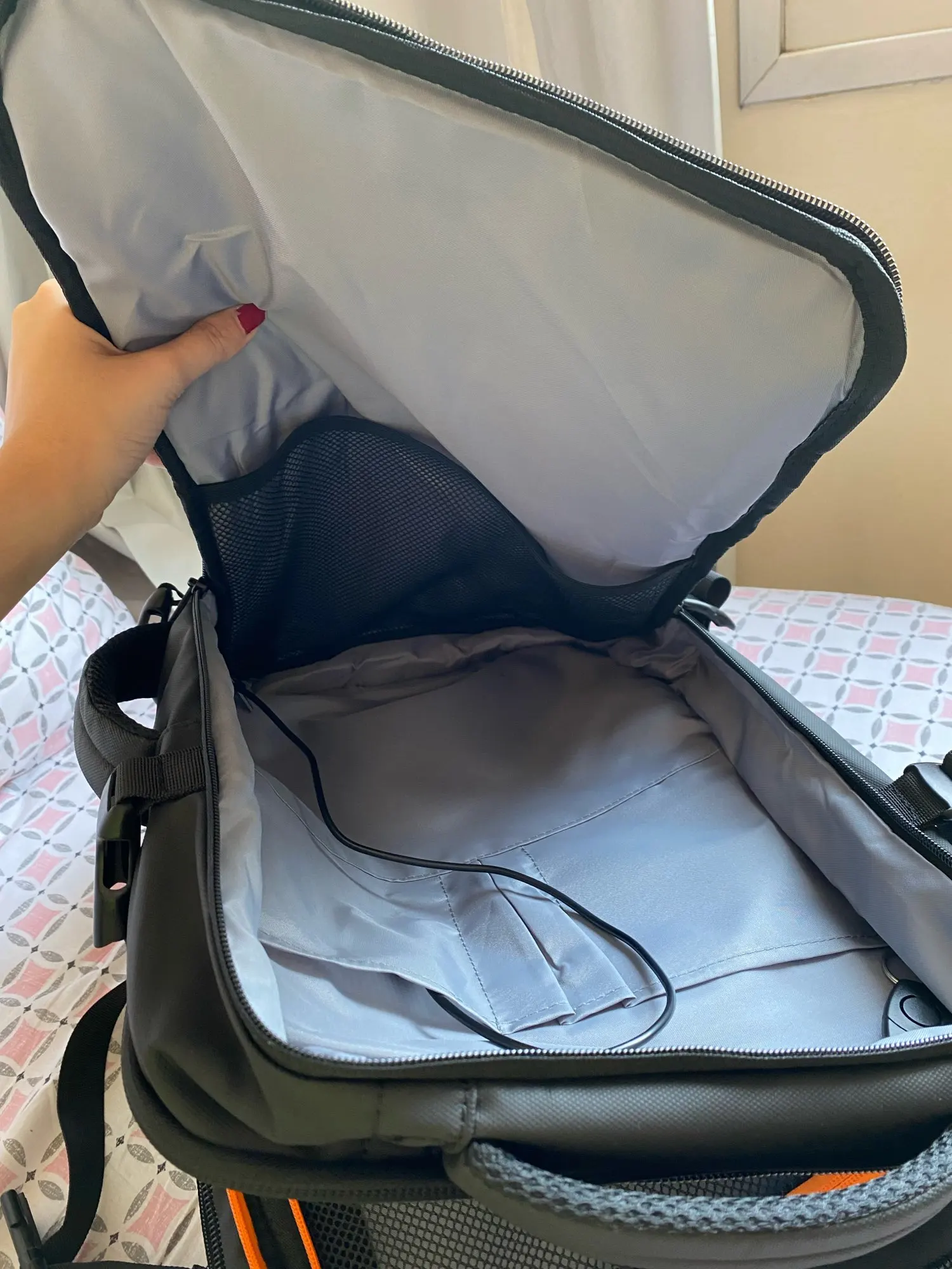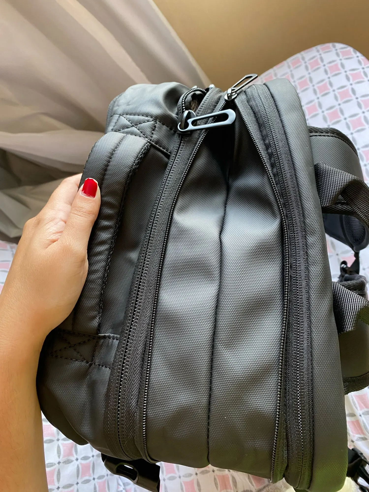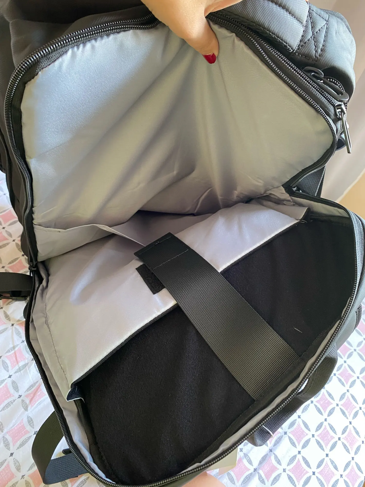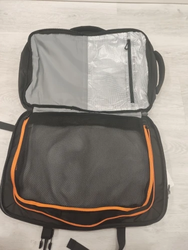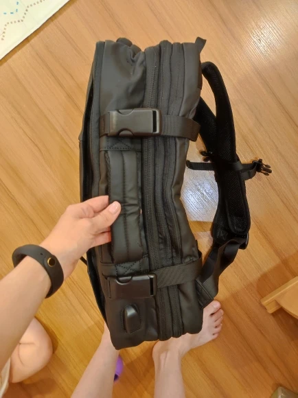 Качество рюкзака отличное. Все молнии и замки спрятаны, покрытие не мокнет. Внутри удобный карман сеткой для одежды, также на другой стороне есть карман как пакет, чтобы видимо положить щётку, шампунь, и то, что может вылиться. Много карманов. Боковые пластиковые замки только с одной стороны, с другой просто ремни не отстёгиваются. Это не портит функции рюкзака, т.к. эти замки с той стороны, где рюкзак открывается как чемодан, удобно. Единственный огромный минус рюкзак шёл 57 дней!!! Это самая долгая доставка, которая у меня когда либо была. Пришлось даже писать продавцу и уточнять местоположение заказа. Заказала 31 июля, должен был придти до 25 августа, по итогу пришёл 1 октября.