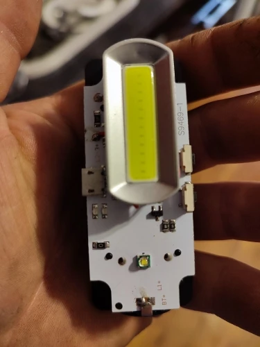 Фанатик хороший плата на алюминиевой основе а значит работать будет долго. Ели нашёл такой, а-то купил на тексталите, текстолит не отводит тепло сгорела при зарядке микросхема и унисла аккумулятор. ЭТО САМЫЙ УДОБНЫЙ Фонарик,светит тёплым белым, хорошо для глас, работаю автомехаником. Покупал другие модели с двумя полосками пришлось подложить другу светил слишком холодным светом.