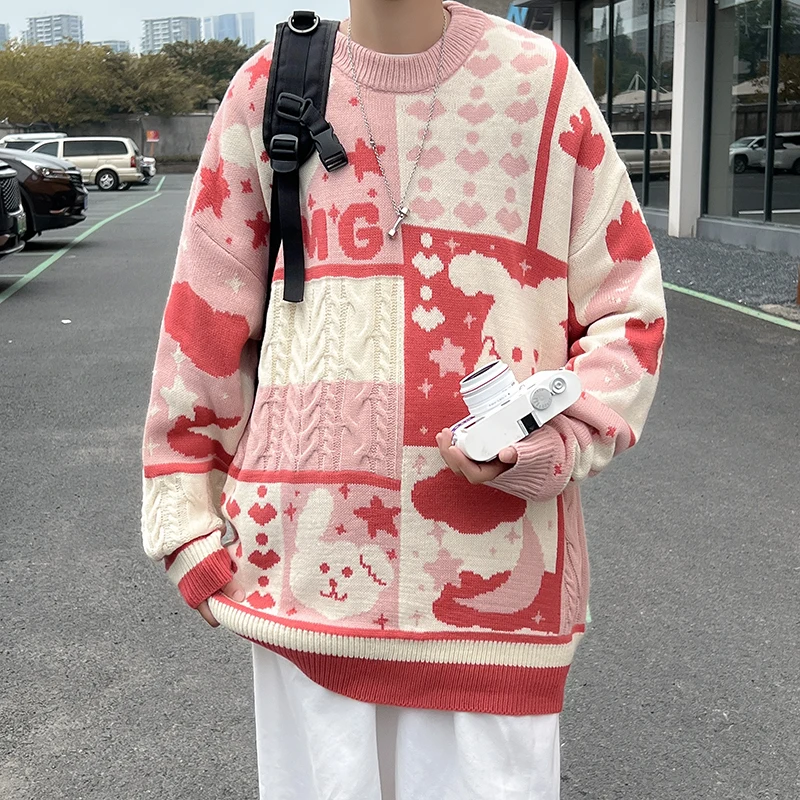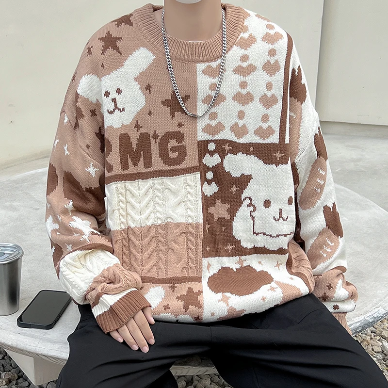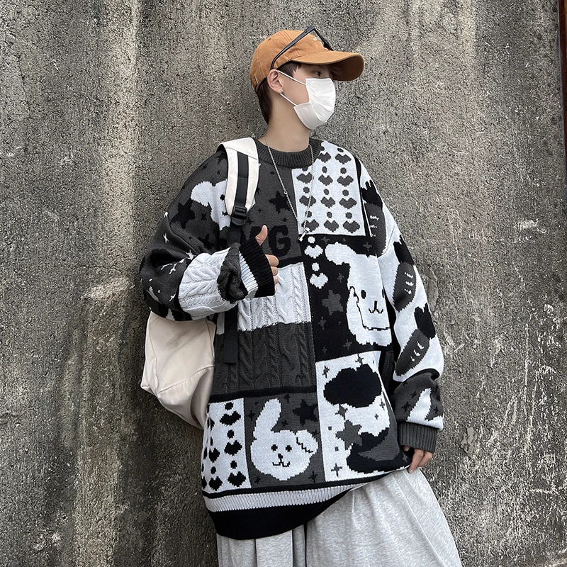 - Свитер мужской трикотажный в стиле хип-хоп, свободного покроя