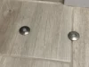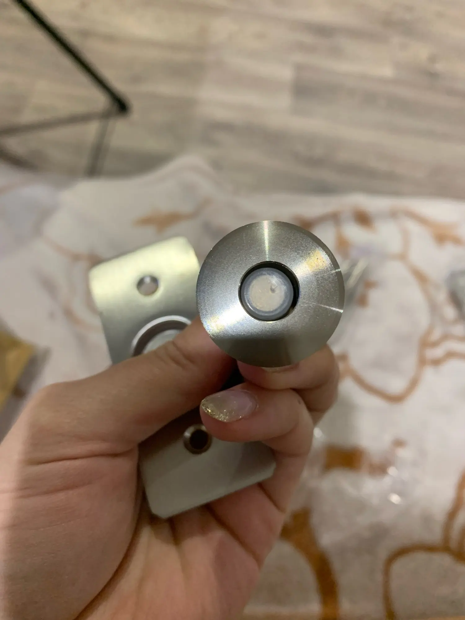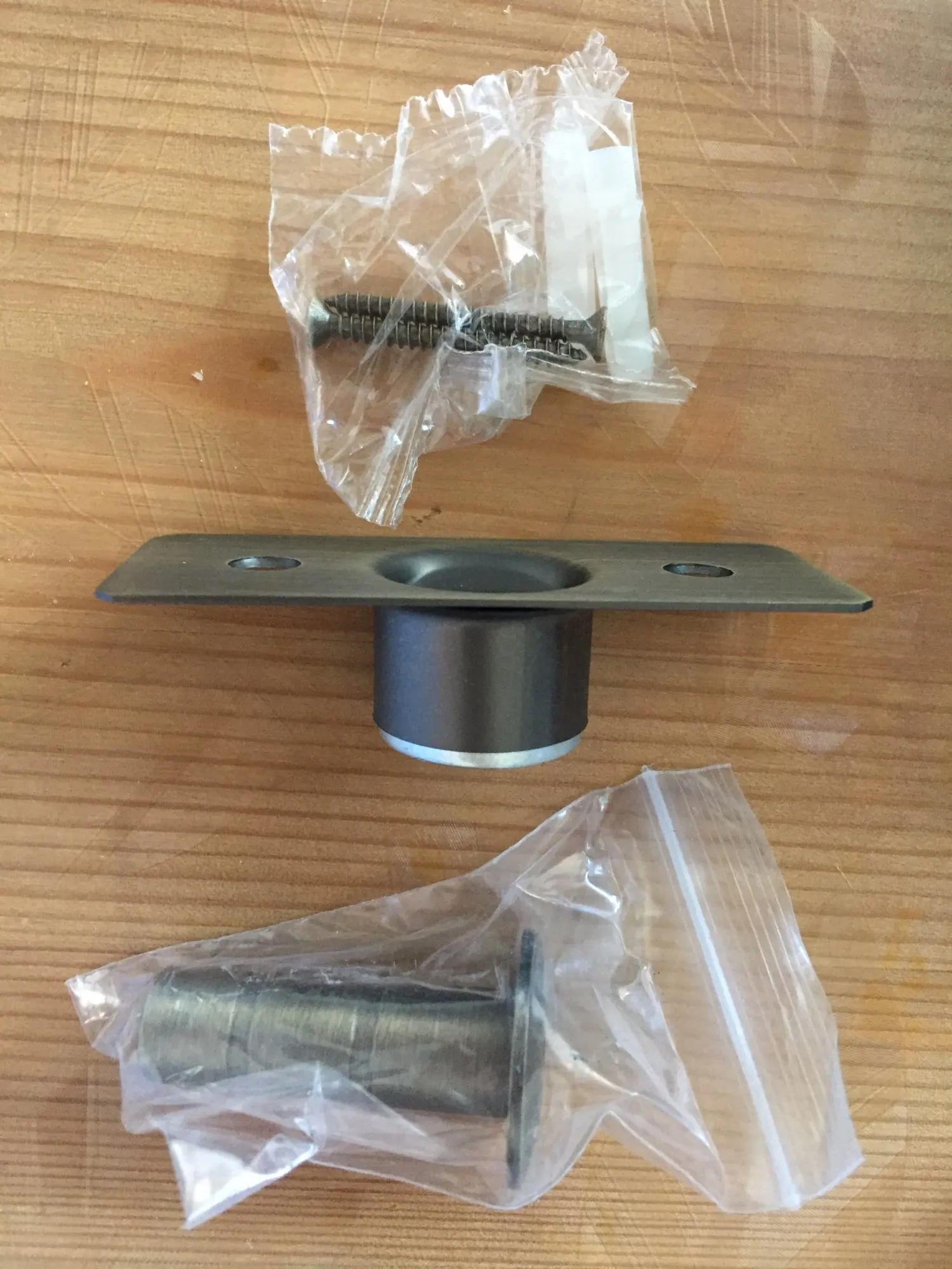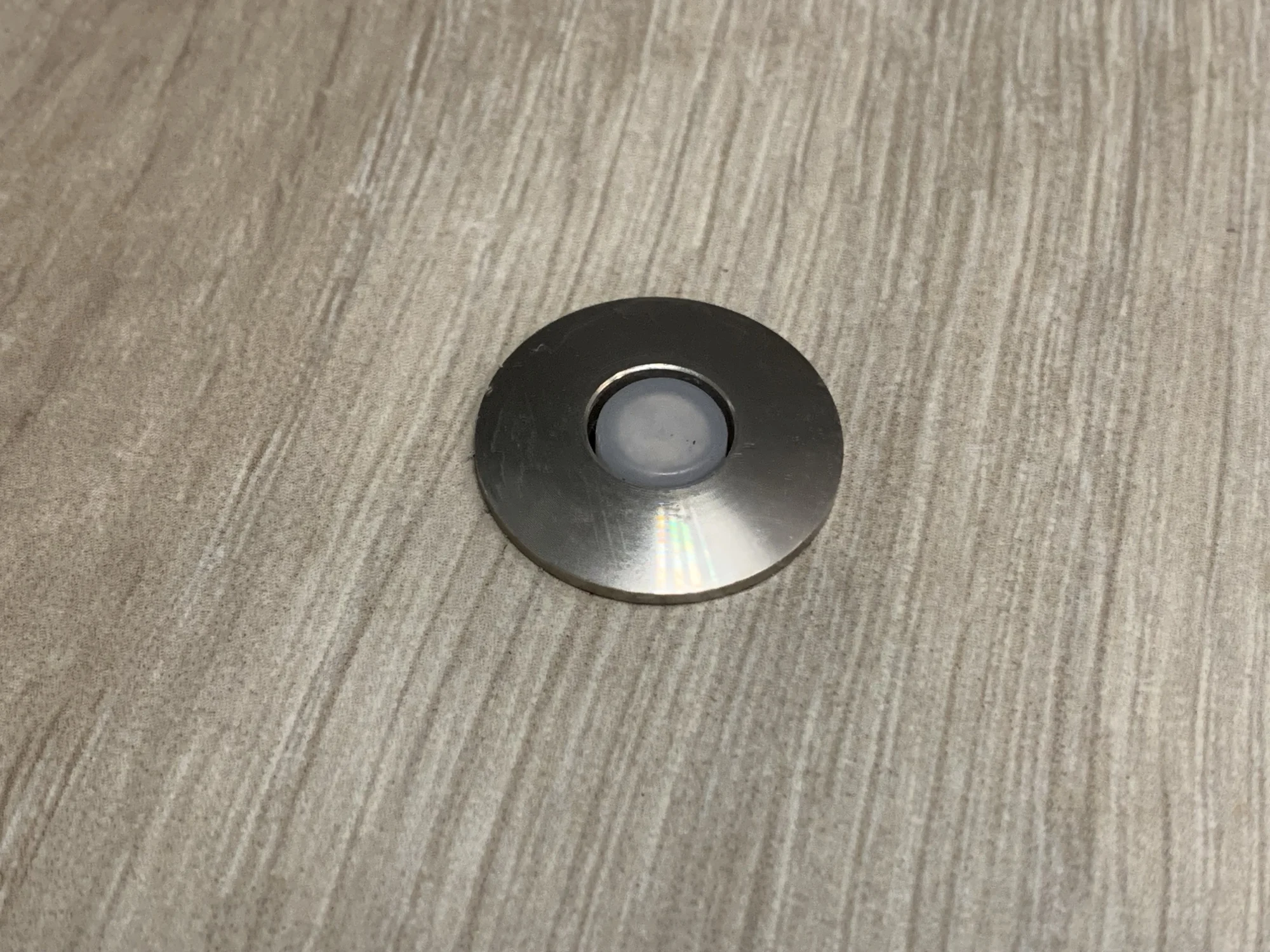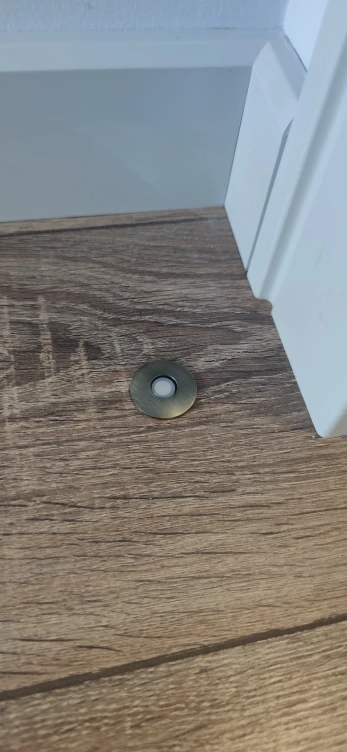 На бежевой плитке и бежево-сером ламинате хромированные смотрятся хорошо. На плитке 15 мм зазор до двери — магнит справляется. На ламинате меньше зазор. Сам корпус стопора либо силумин, либо крашенный пластик. Имеет коническую форму. Внизу 12 мм, у крышки 14 мм. Советую покупать коронку, а не сверло. На дне имеется отверстие. Судя по всему либо для крепления к полу, либо сливу влаги. Дверь стопарят. Сильно хлопаешь дверью — гнется и дверь, и стопор. Больше подходит для случаев, когда дверь сама закрывается, если криво висит, либо ты ее сам открыл и забыл, а она дальше пошла. То есть стопор на всякий случай.
